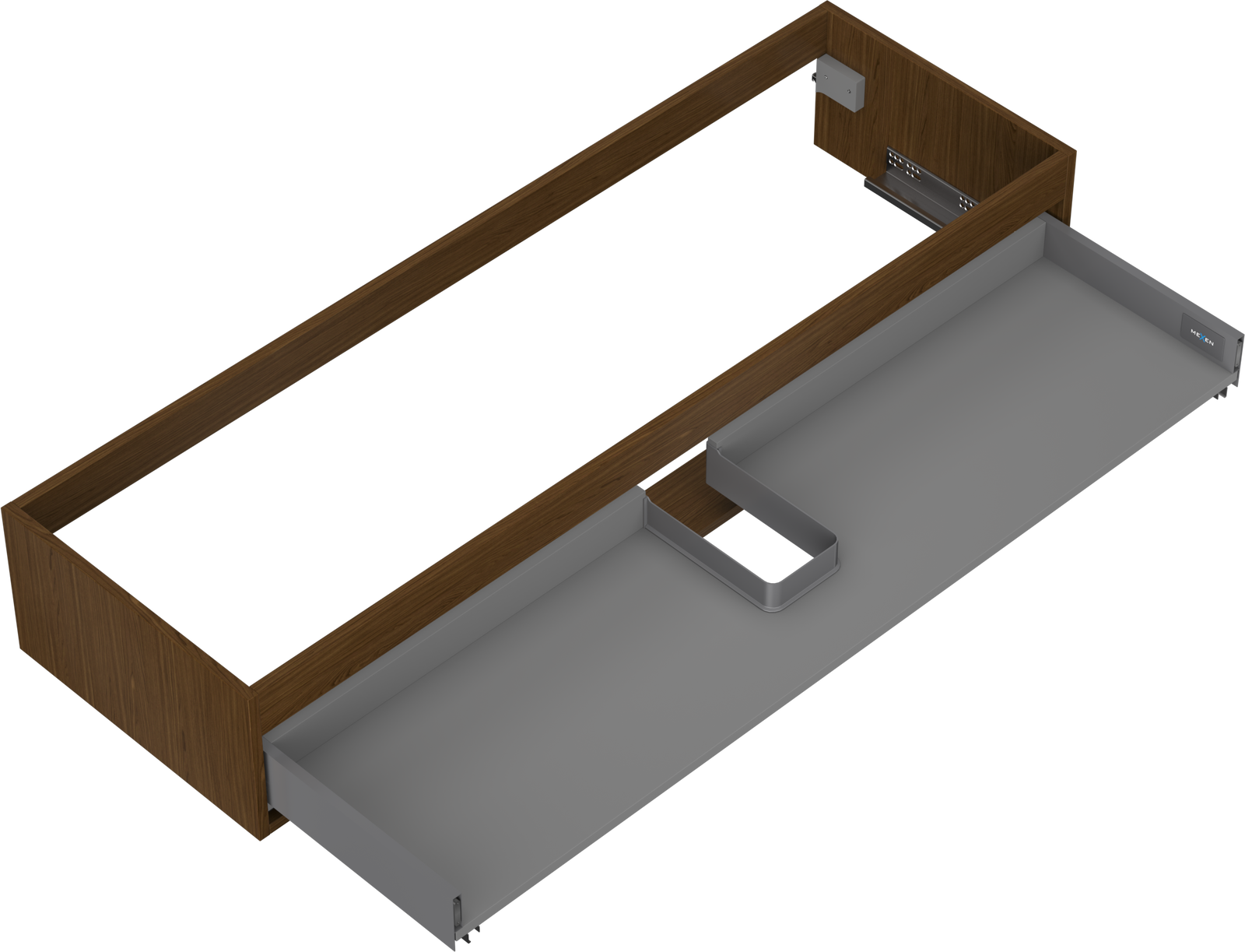 Výrez v zásuvke je navrhnutý tak, aby pojal sifón, ktorý je nevyhnutný v umývadlových inštaláciách. Vďaka tomu môže byť nábytok namontovaný plne funkčne, bez nutnosti vzdávať sa priestoru v zásuvke v prospech inštalácie.