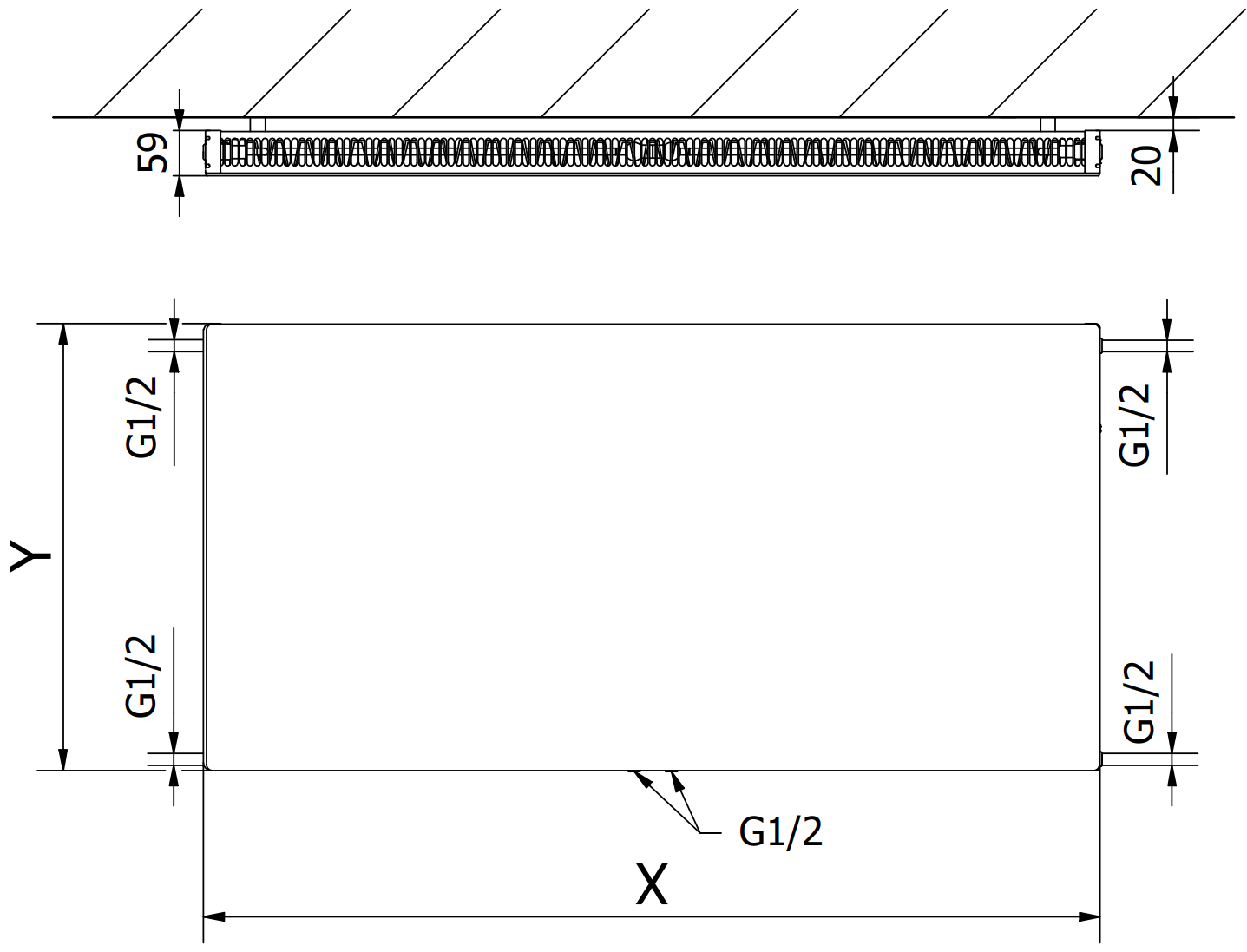 Mexen Flat CCF11 doskový radiátor 900 x 2000 mm, dolné stredové pripojenie, 2182 W, antracit - W6C11F-090-200-66