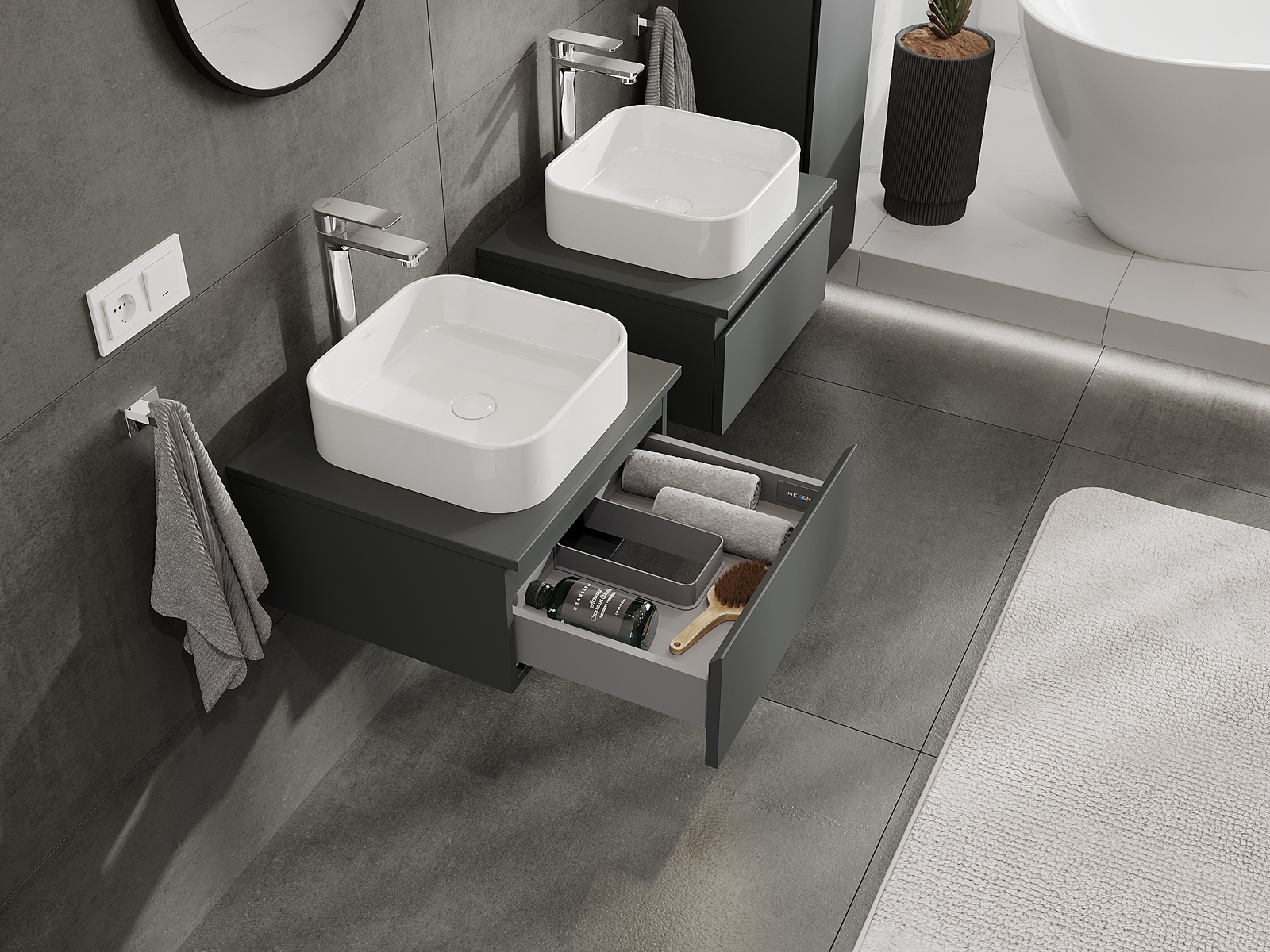 Mexen Orio kúpeľňová skrinka pod umývadlo 50 cm, 1 zásuvka, grafit mat - 91A10-05023-1-BF66