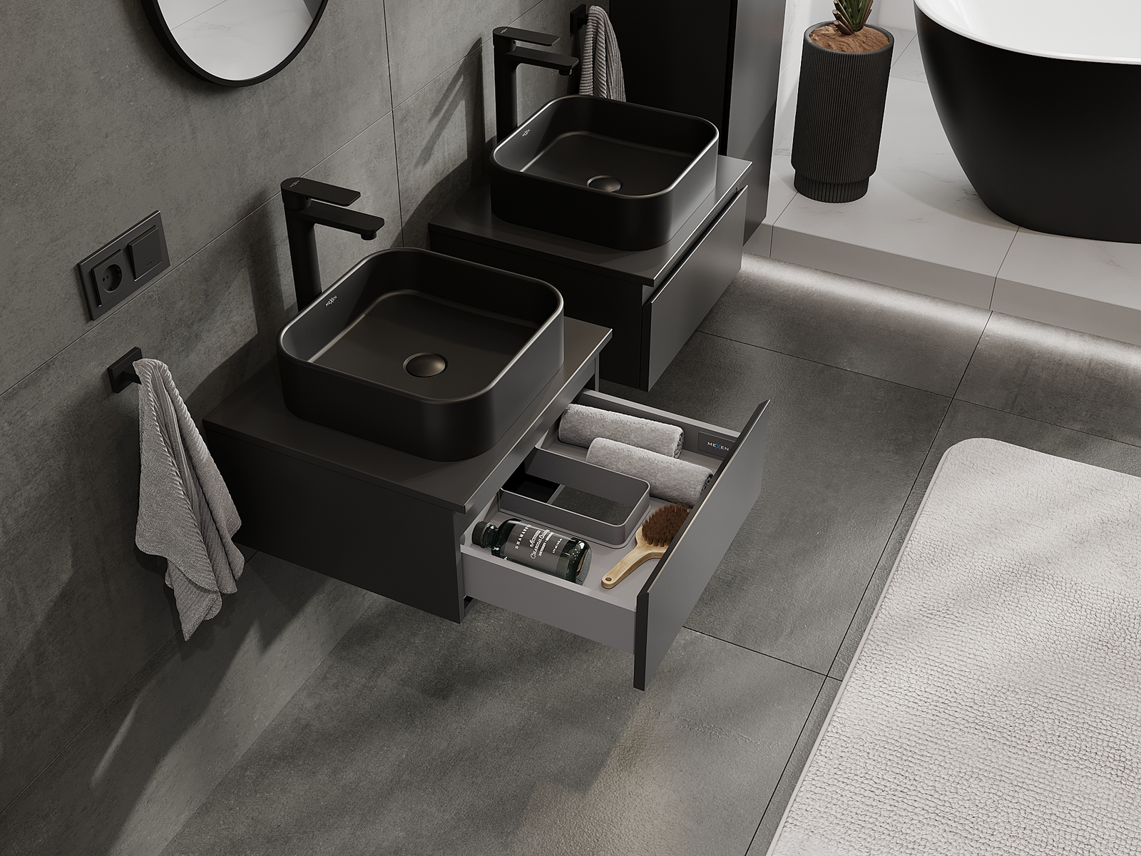 Mexen Orio kúpeľňová skrinka pod umývadlo 50 cm, 1 zásuvka, čierna matná - 91A10-05023-1-BF71