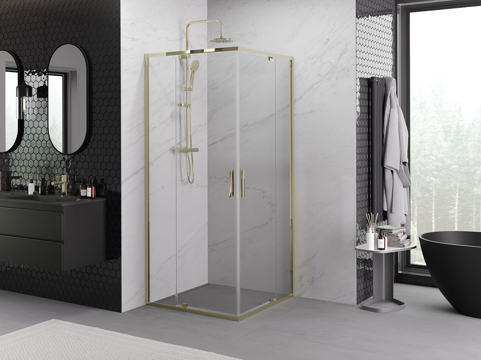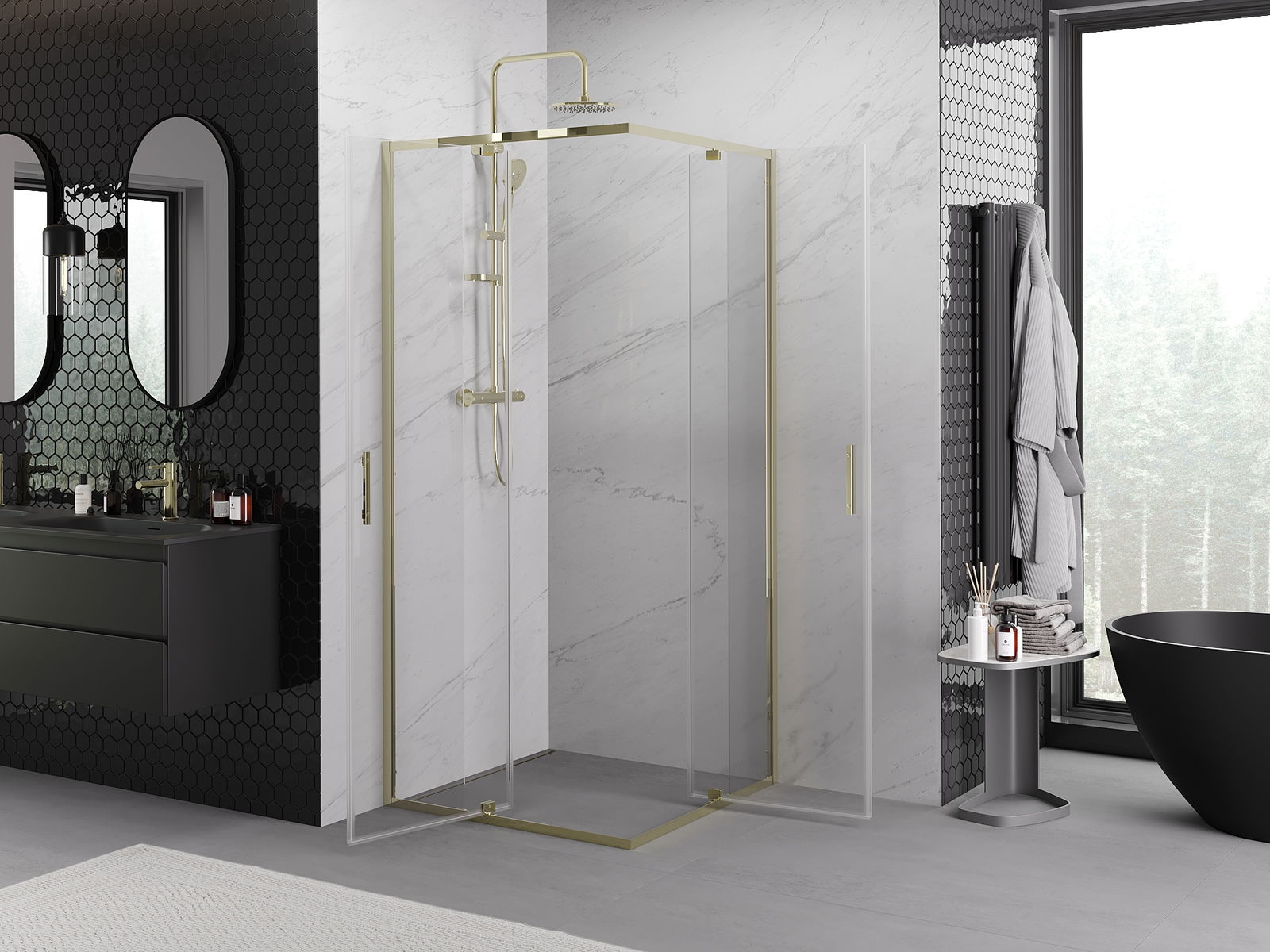 Mexen Exo štvorcová sprchová kabína výklopná 100 x 100 cm, transparentná, zlatá - 8110-100-100-50-00