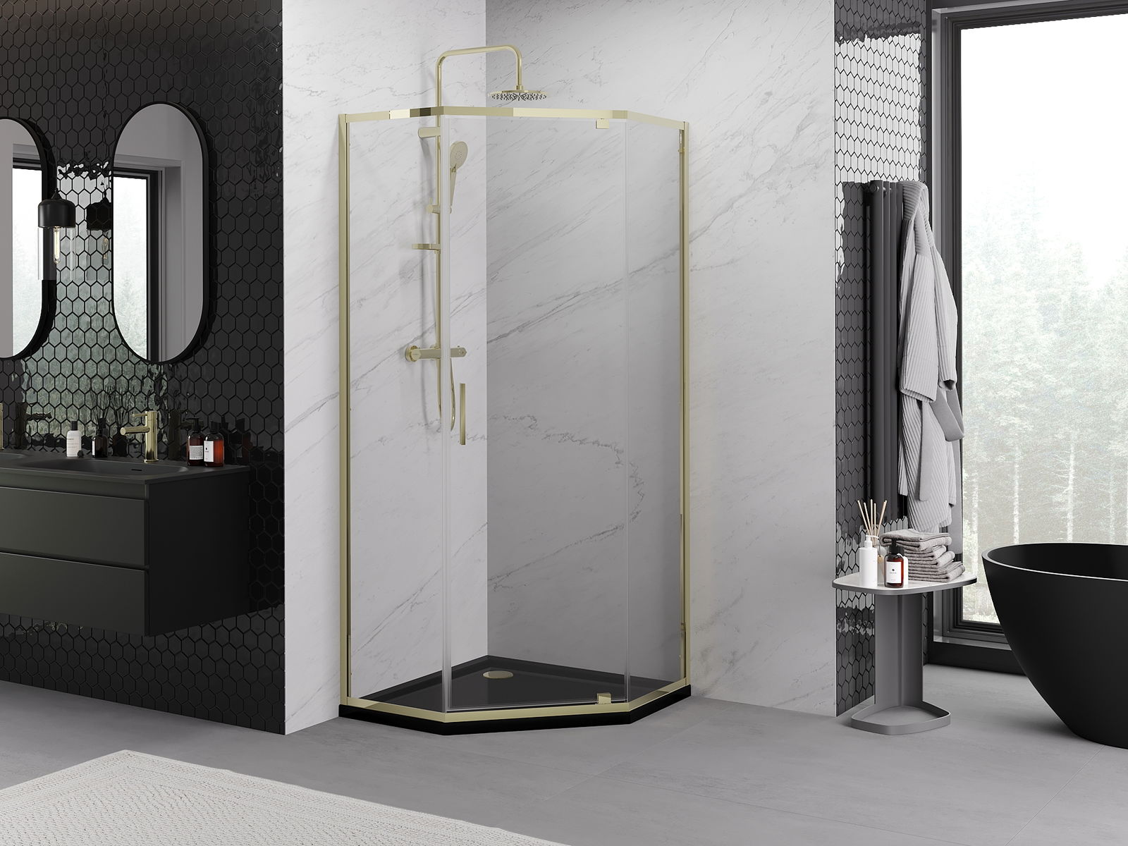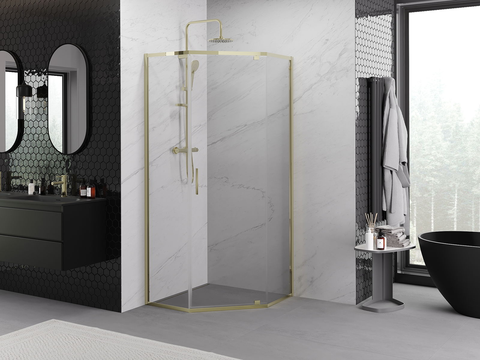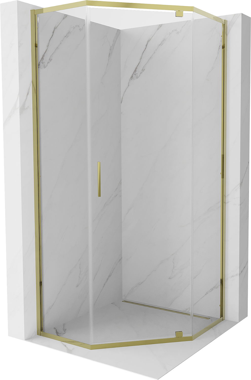 Mexen Exo päťuholníková sprchová kabína s otváracími dverami 80 x 80 cm, transparentná, zlatá - 812-080-080-50-00