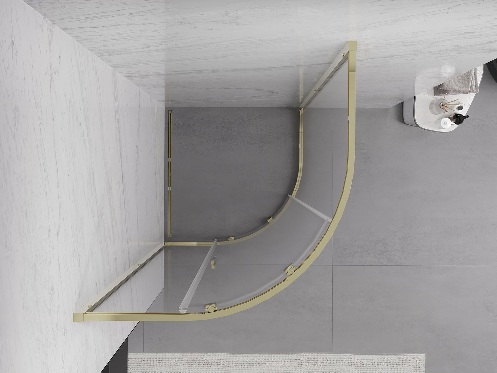 Mexen Exo polokruhová sprchová kabína posuvná 80 x 80 cm, transparentná, zlatá - 8131-080-080-50-00