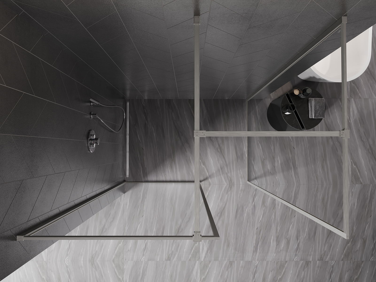 Mexen Kioto-F sprchová stena Walk-in s rámom 150 x 70 cm, transparentná 8 mm, brúsený nikel - 800-150-202-04-97-070