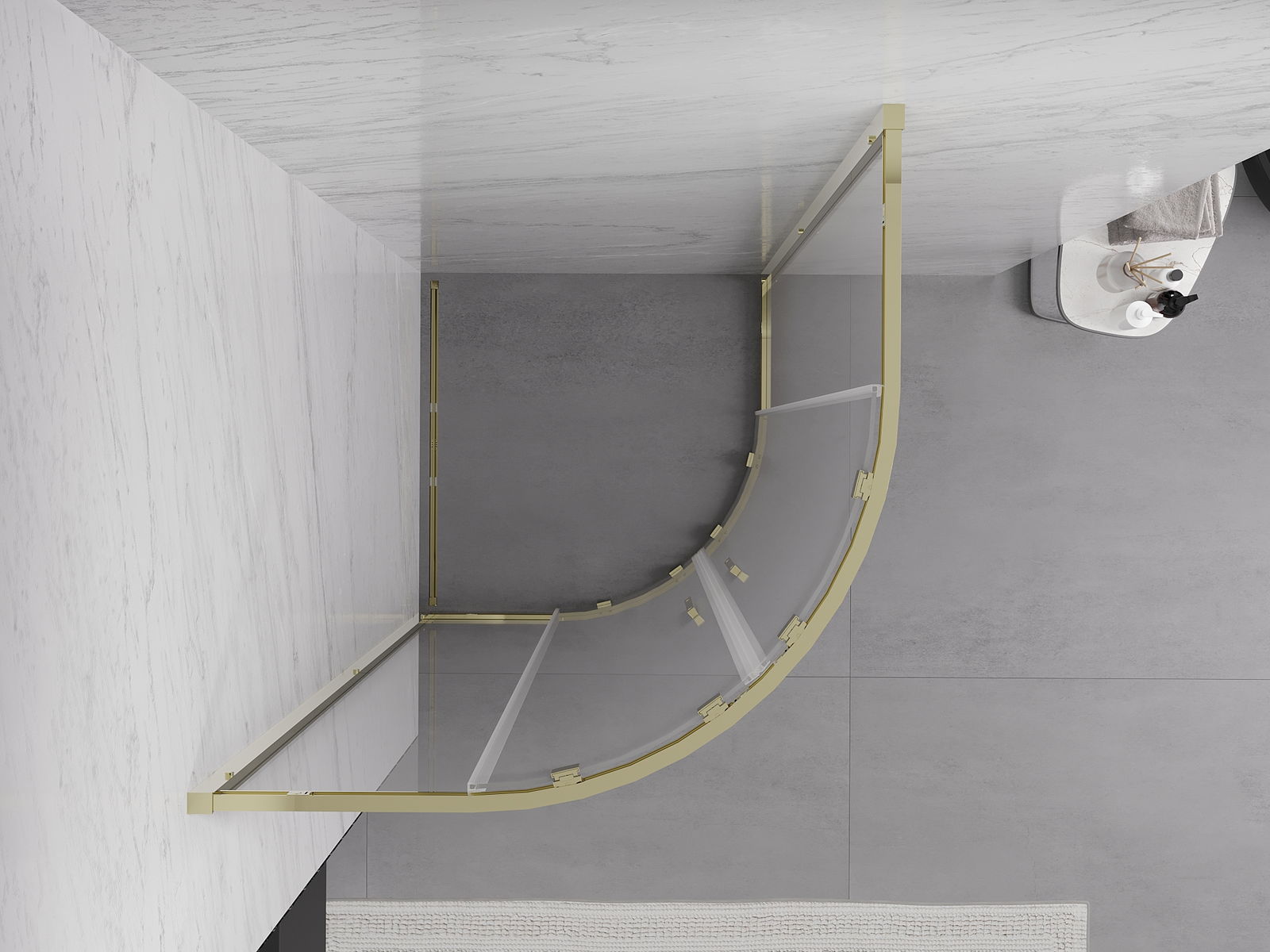 Mexen Exo polokruhová sprchová kabína posuvná 80 x 80 cm, transparentná, zlatá - 8132-080-080-50-00