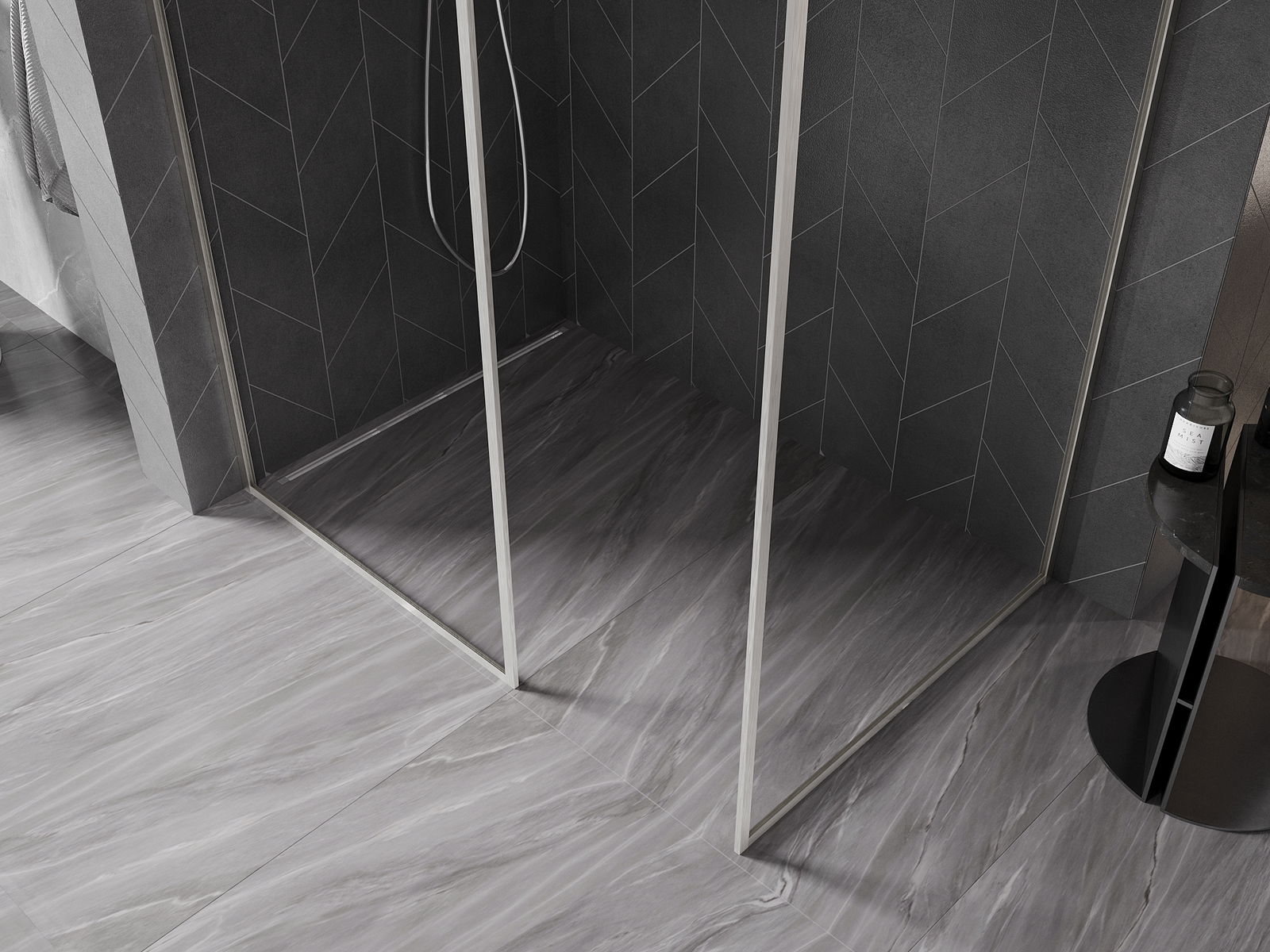 Mexen Kioto-F sprchová stena Walk-in s rámom 100 x 80 cm, transparentná 8 mm, brúsený nikel - 800-100-202-04-97-080