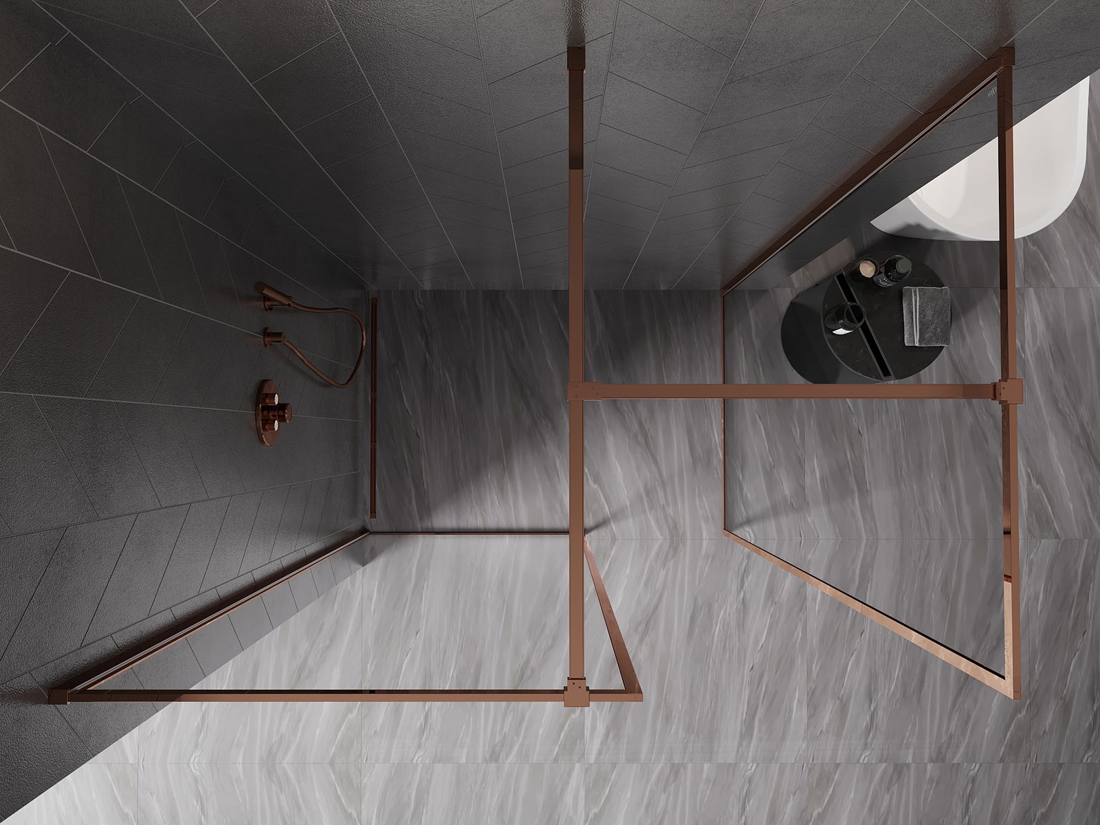 Mexen Kioto-F sprchová stena Walk-in s rámom 80 x 80 cm, transparentná 8 mm, ružové zlato - 800-080-202-04-60-080