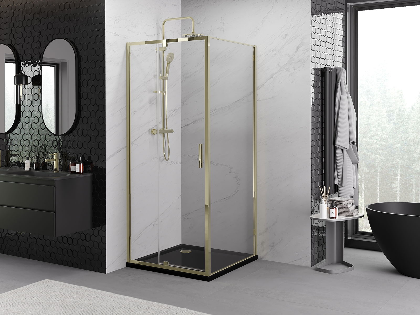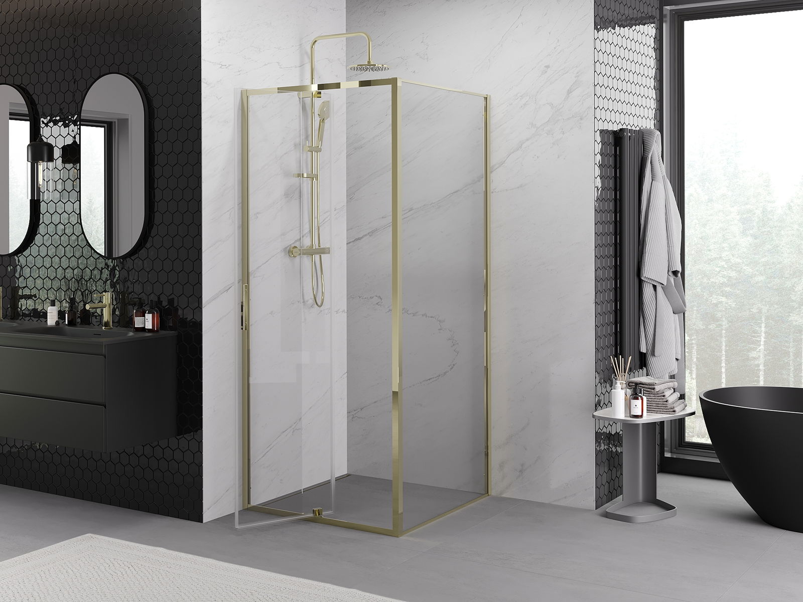 Mexen Exo otvárateľná sprchová kabína 90 x 90 cm, transparentná, zlatá - 819-090-090-50-00