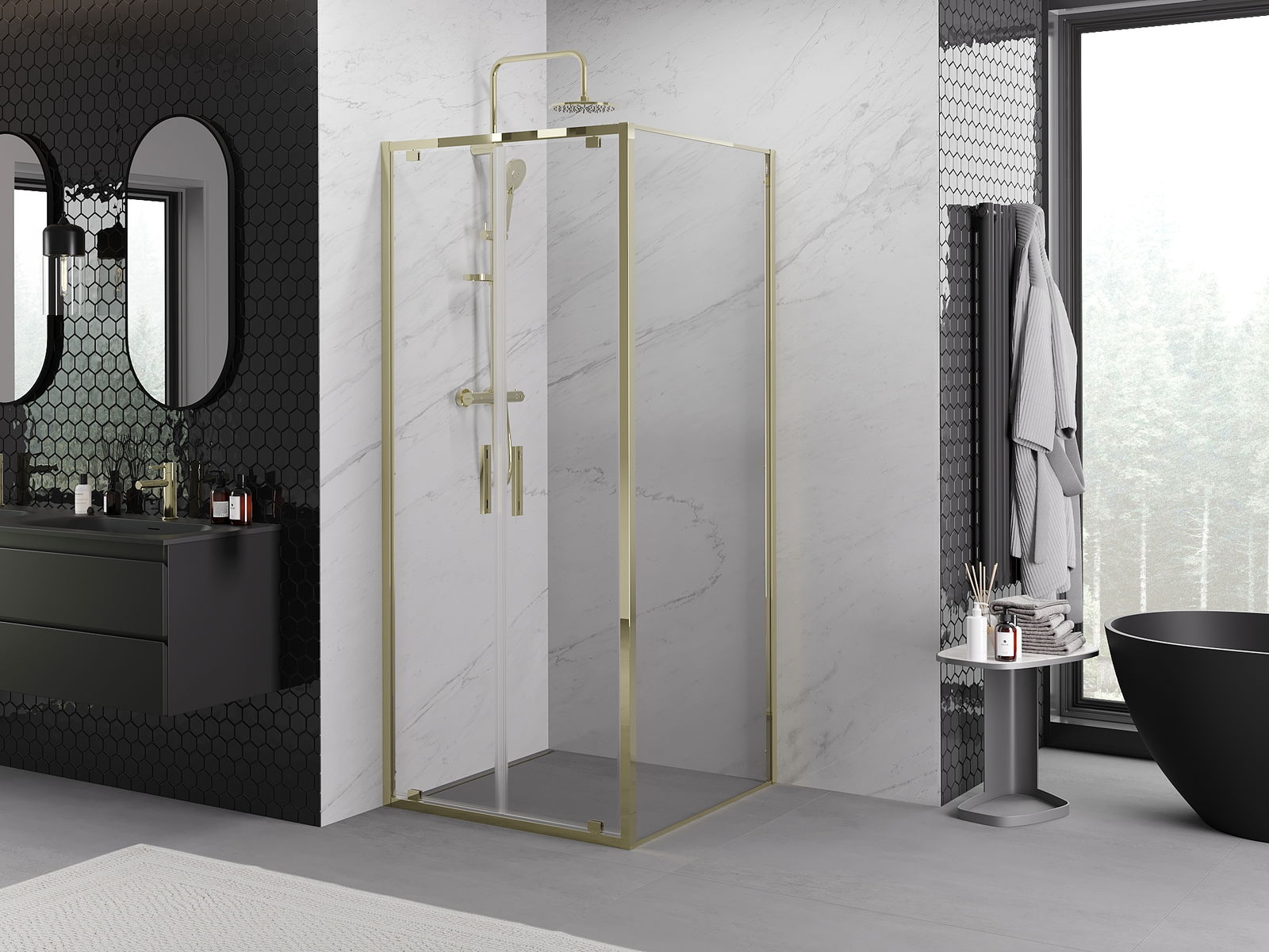 Mexen Exo sprchová kabína výklopná 100 x 100 cm, transparentná, zlatá - 8182-100-100-50-00