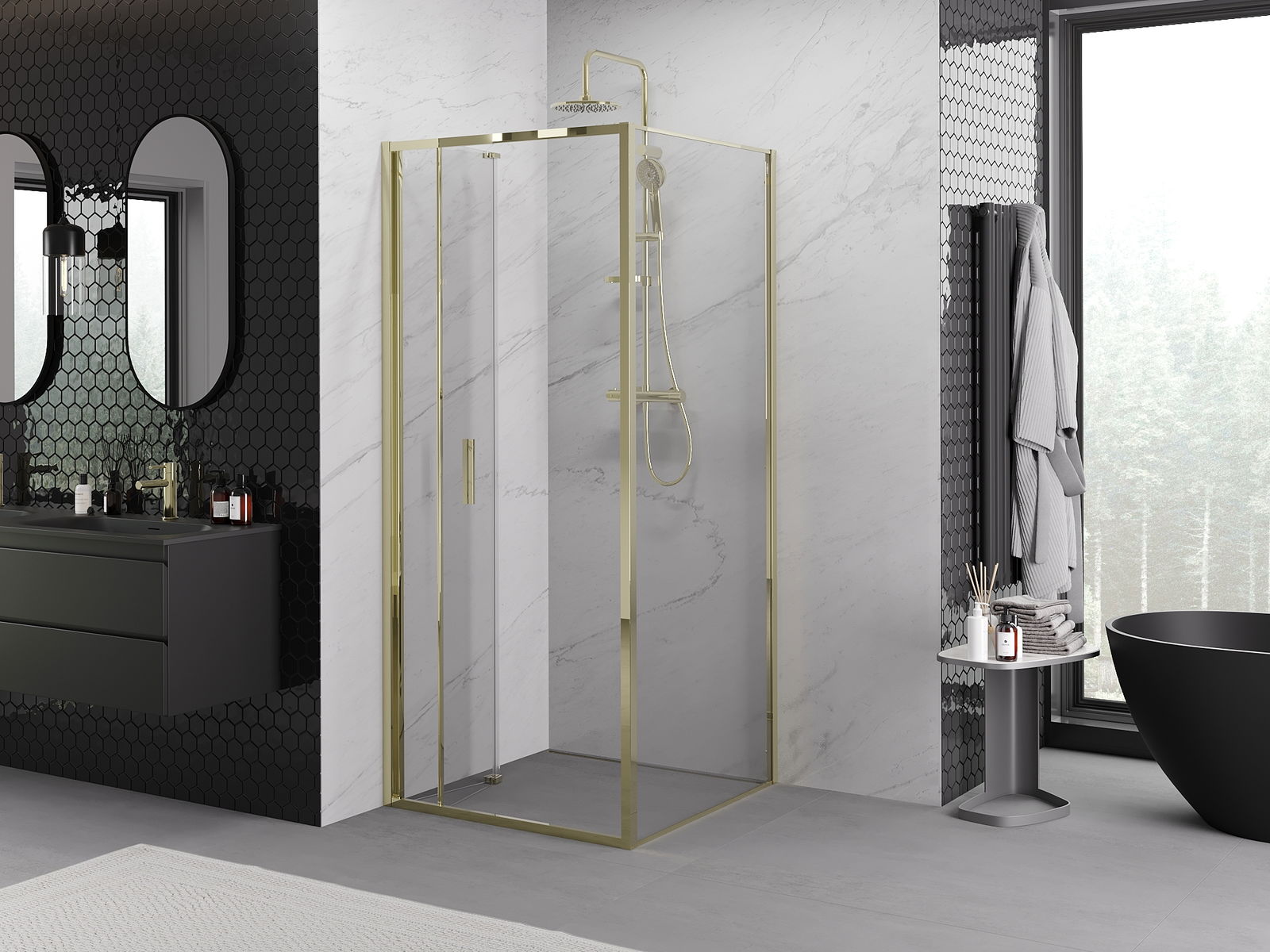 Mexen Exo skladacia sprchová kabína 90 x 90 cm, transparentná, zlatá - 816-090-090-50-00