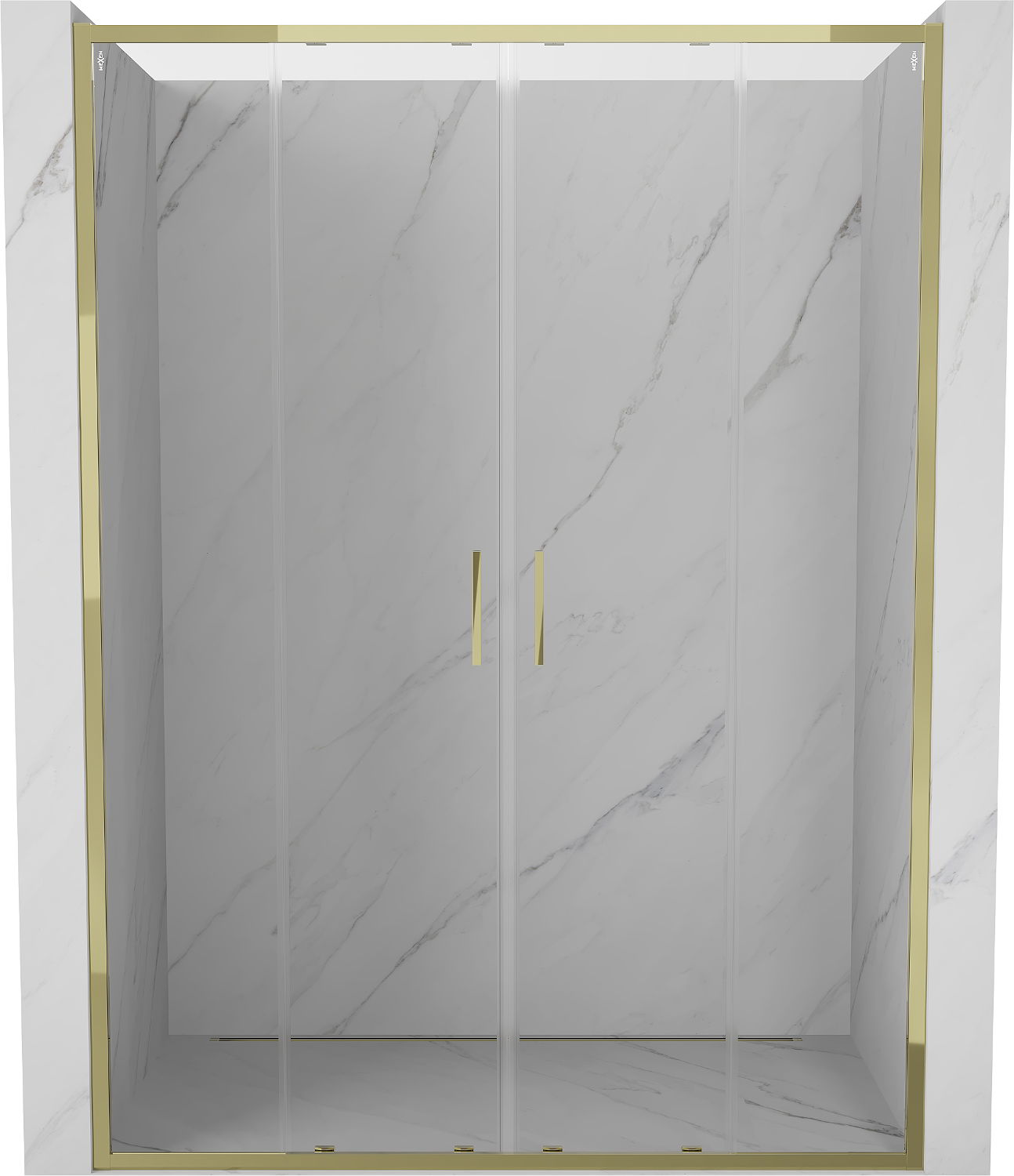 Mexen Exo dvojité posuvné sprchové dvere 150 cm, transparentné, zlaté - 8152-150-000-50-00