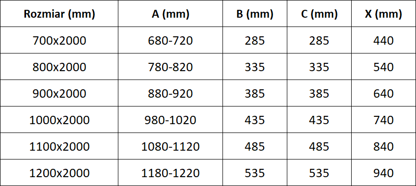 Sprchové kúty, dvere a steny sú štandardne prispôsobené na montáž na sprchové vaničky určitých rozmerov. Práve tieto rozmery sú uvedené v názve alebo popise produktu. Je však potrebné mať na pamäti, že skutočné rozmery prvkov sa môžu mierne líšiť od nominálnych hodnôt. V prípade plánovanej montáže priamo na podlahu sa odporúča dôkladne skontrolovať vonkajšie rozmery a rozmiestnenie prvkov podľa technického nákresu.
