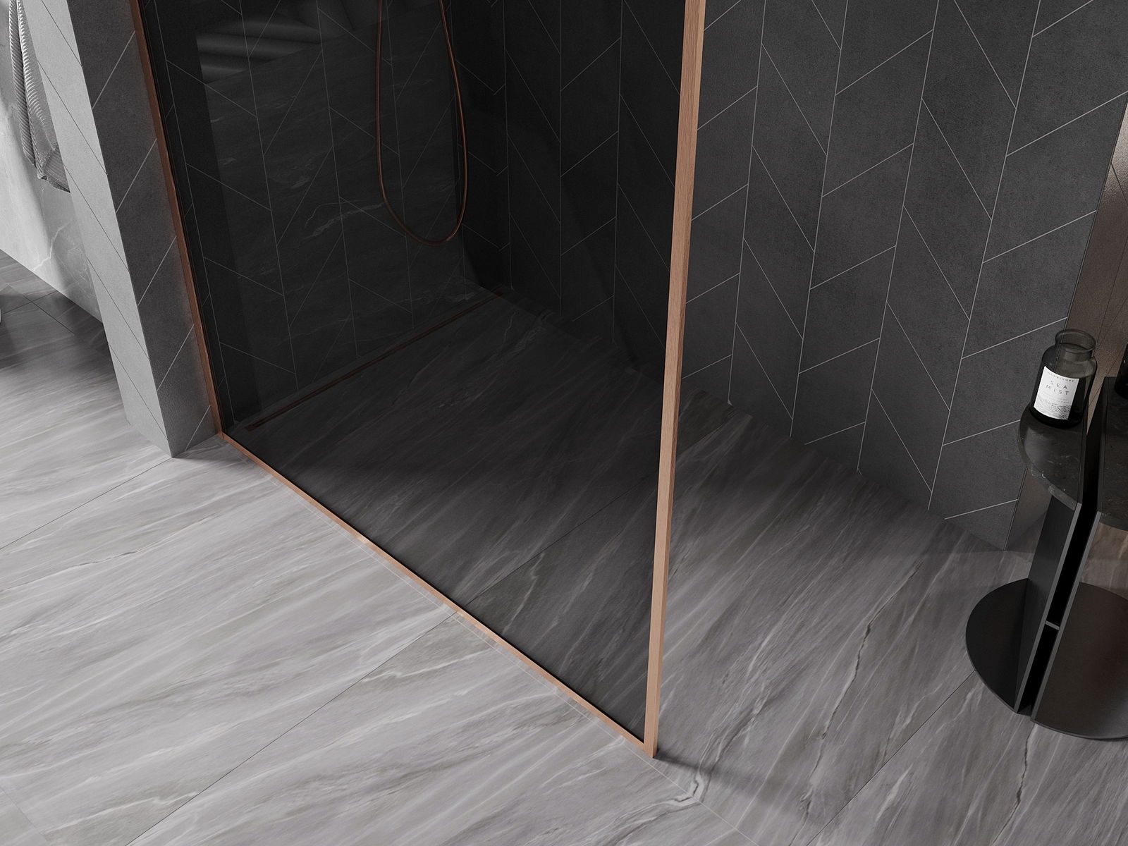 Mexen Kioto-XF sprchová stena Walk-in s rámom 60 x 202 cm, grafit 10 mm, brúsená meď - 800-060-104-65-40-X