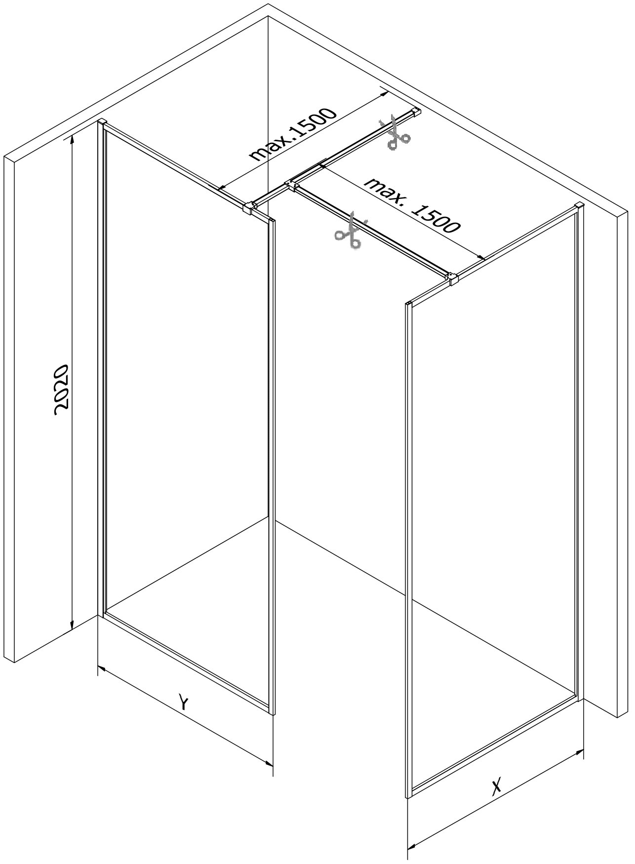 Šírka: 130x90 cm (stena X - 130 cm, stena Y - 90 cm)