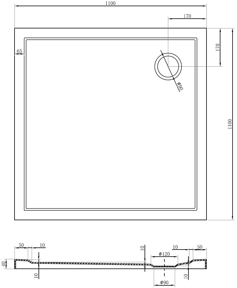 Mexen Flow sprchová vanička štvorcová slim 110 x 110 cm, biely lesk - 46S101111