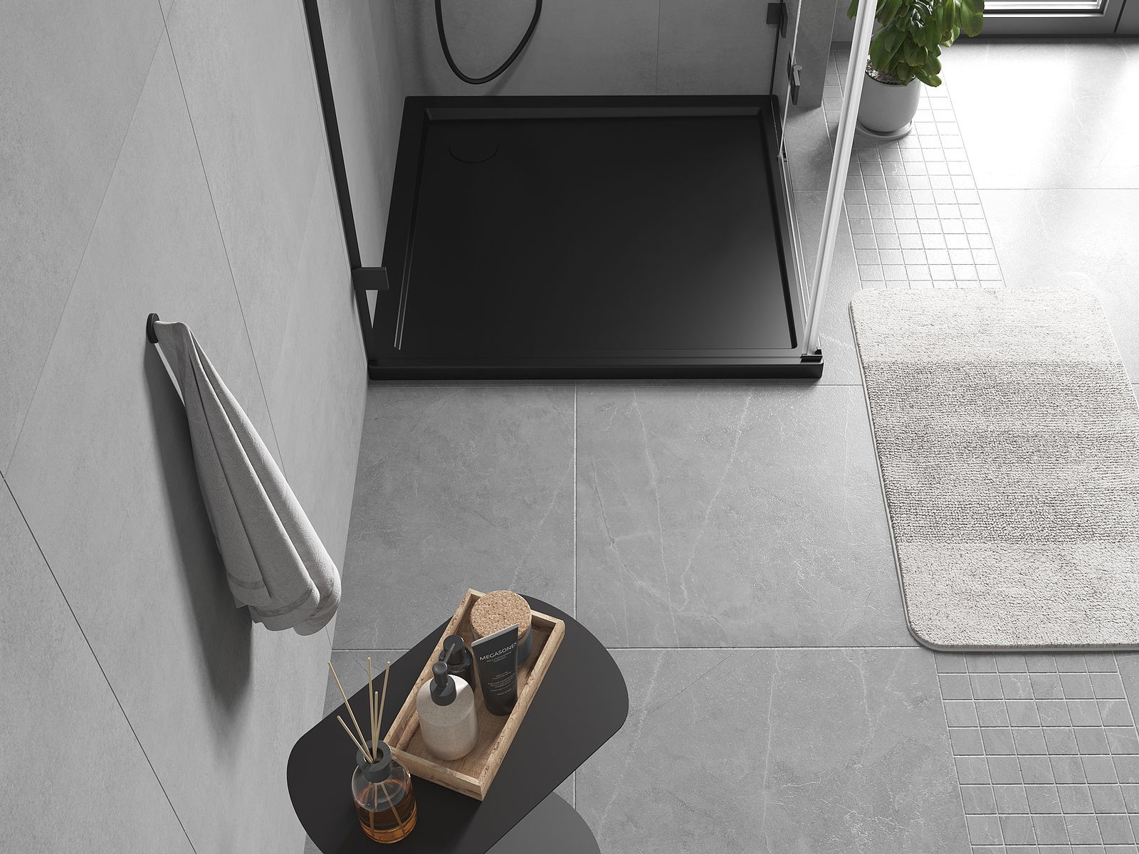 Sprchová vanička má nízky prah, čo uľahčuje vstupovanie a vystupovanie zo sprchy. Dodáva miestnosti výnimočný a nadčasový vzhľad, čím robí kúpeľňu komfortným a estetickým miestom na každodenný relax.