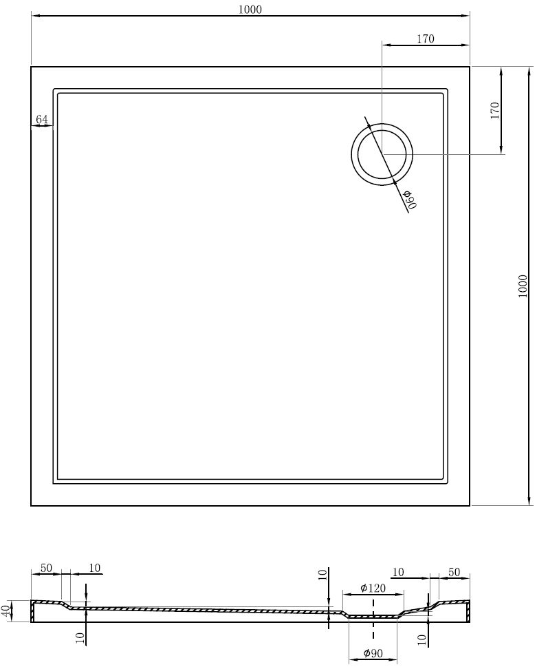 Mexen Flow štvorcová sprchová vanička slim 100 x 100 cm, čierny mat - 46S701010