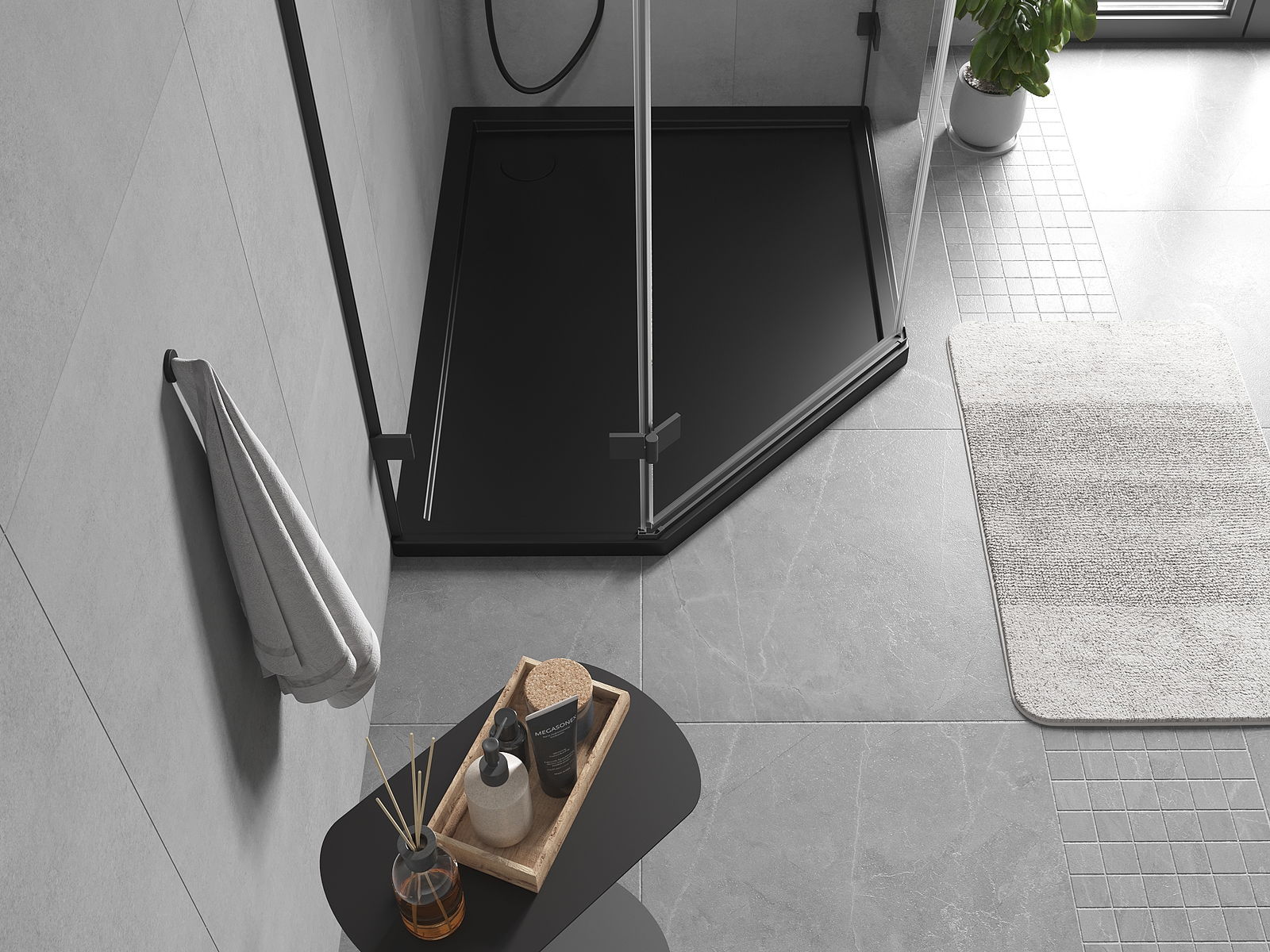 Sprchová vanička má nízky prah, čo uľahčuje vstupovanie a vystupovanie zo sprchy. Dodáva miestnosti výnimočný a nadčasový vzhľad, čím robí kúpeľňu komfortným a estetickým miestom na každodenný relax.
