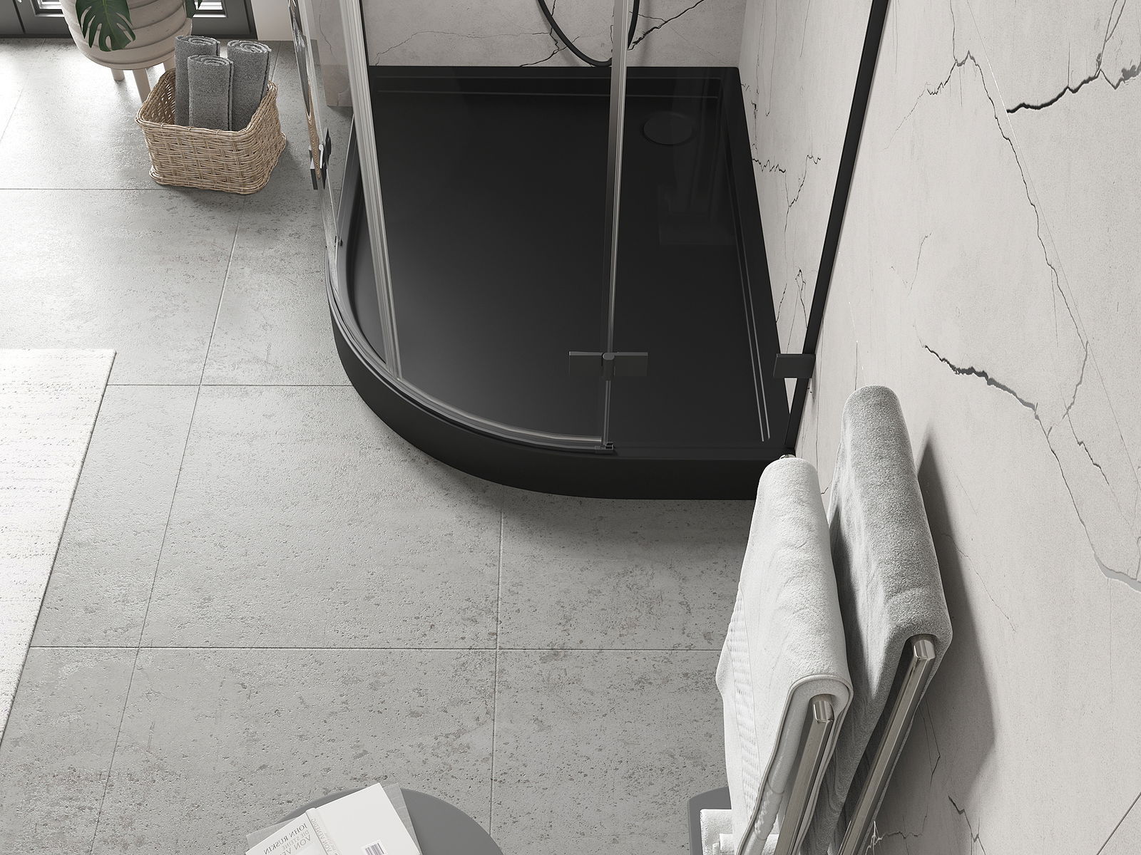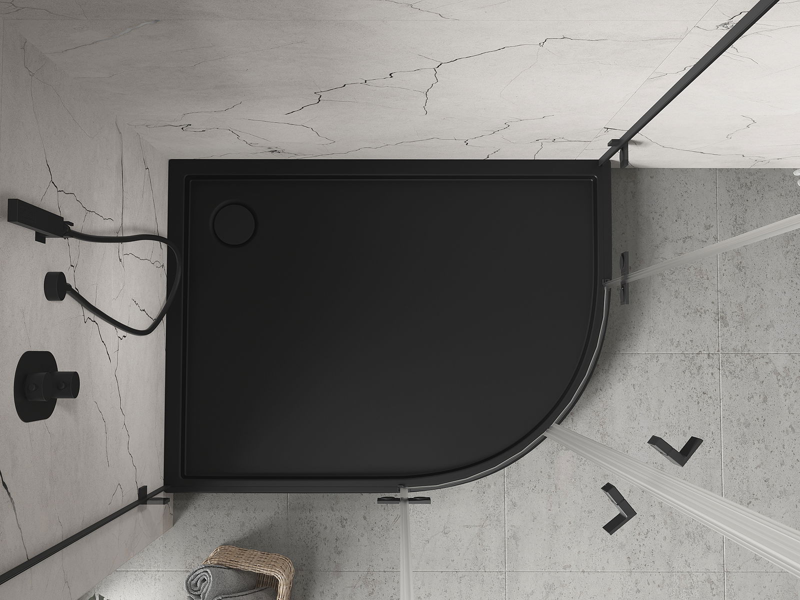 Mexen Flow+ asymetrický polkruhový sprchový kút ľavý 90 x 80 cm, čierny matný - 46Q708090LH