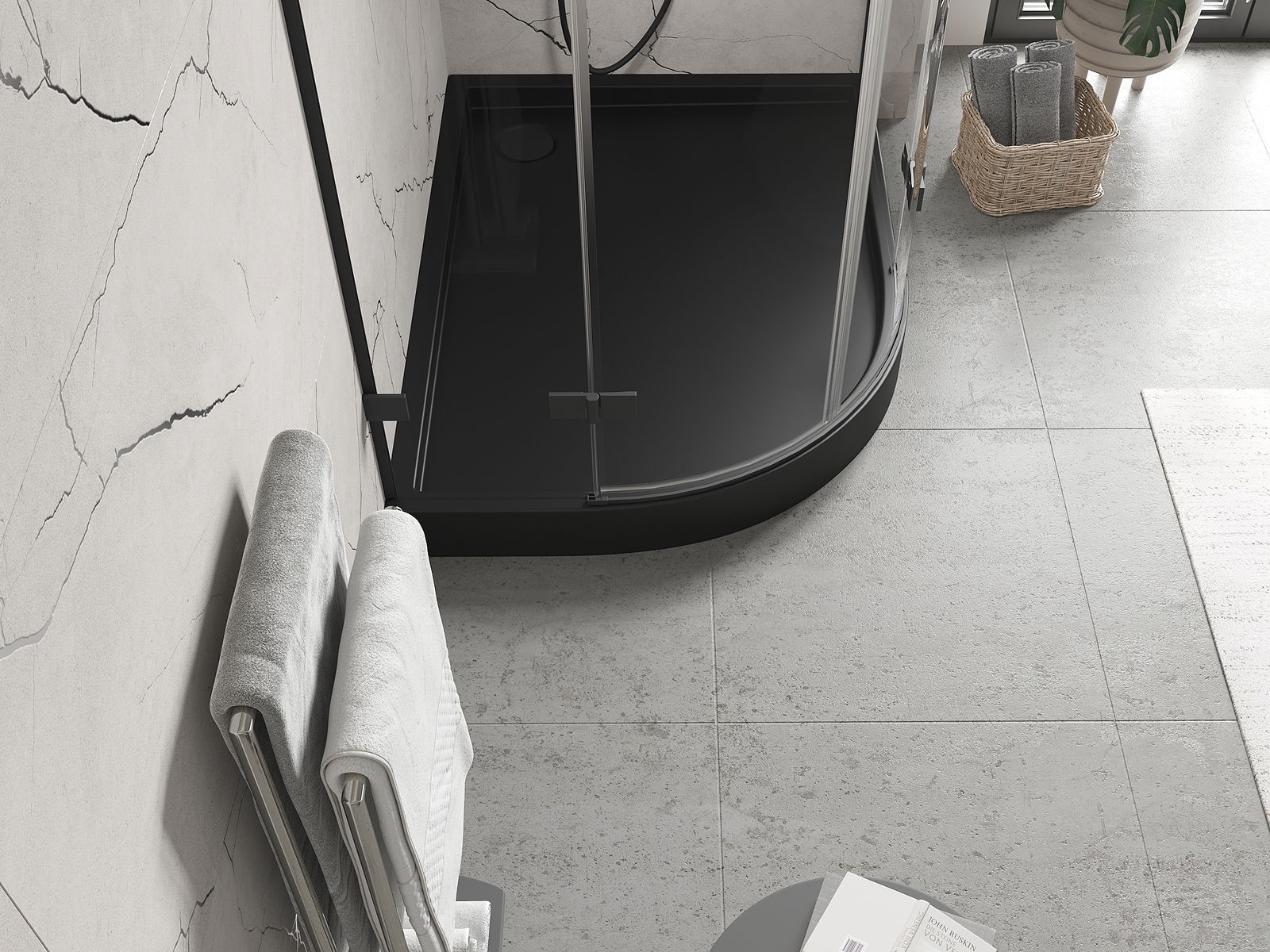 Mexen Flow+ asymetrický pravý štvrťkruhový sprchový kút 90 x 80 cm, čierny mat - 46Q708090RH