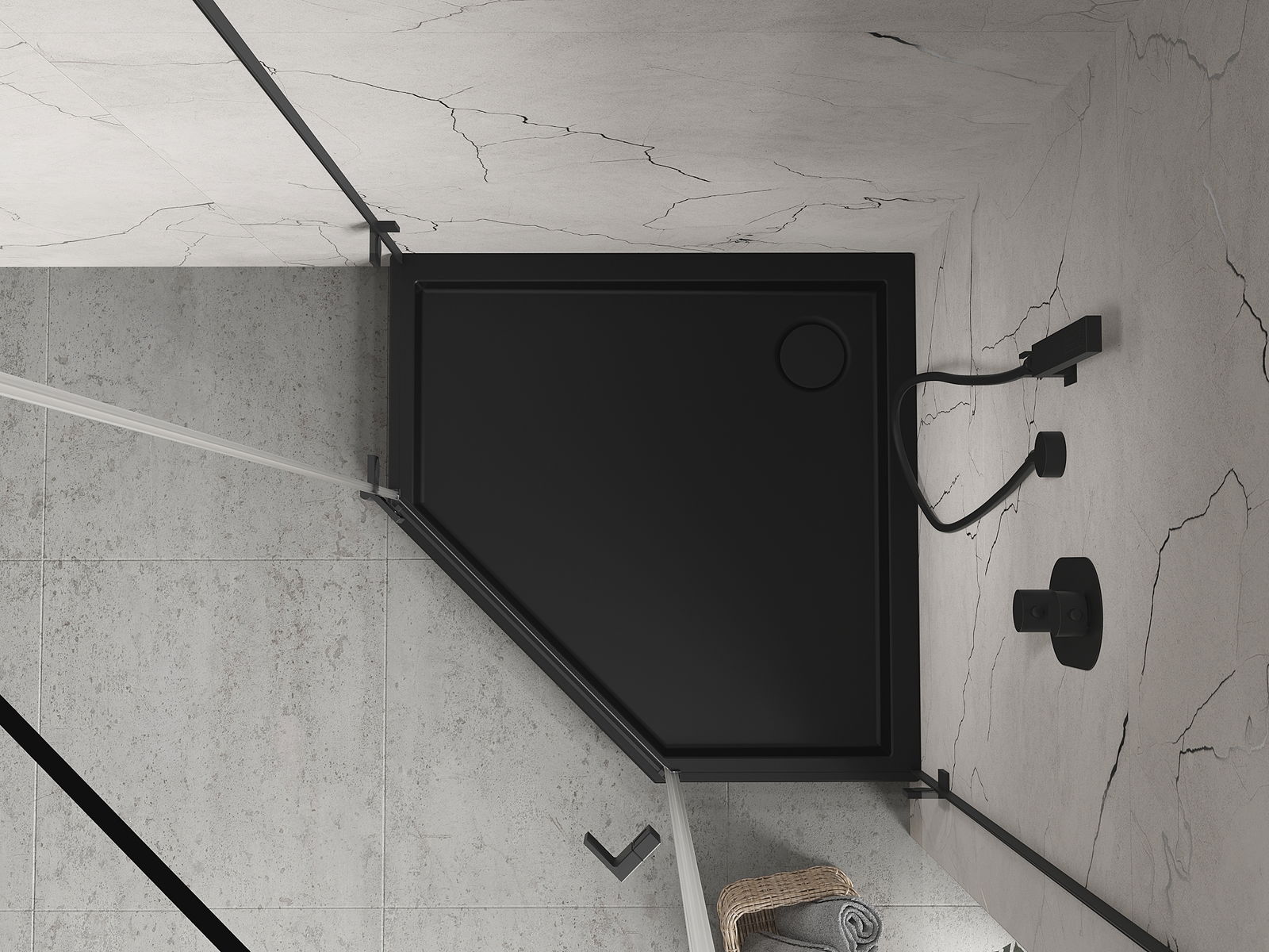 Mexen Flow+ pentagonálny sprchový kút 80 x 80 cm, čierny mat - 46P708080H