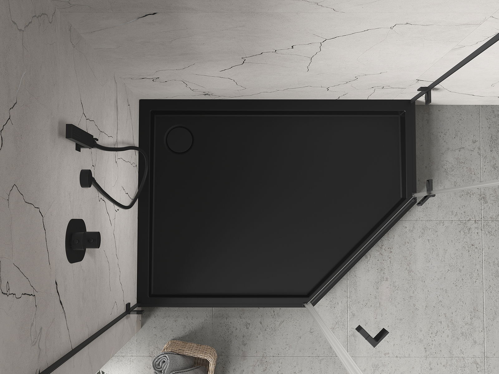 Mexen Flow+ päťuholníková sprchová vanička ľavá 100 x 90 cm, čierny mat - 46P709010LH