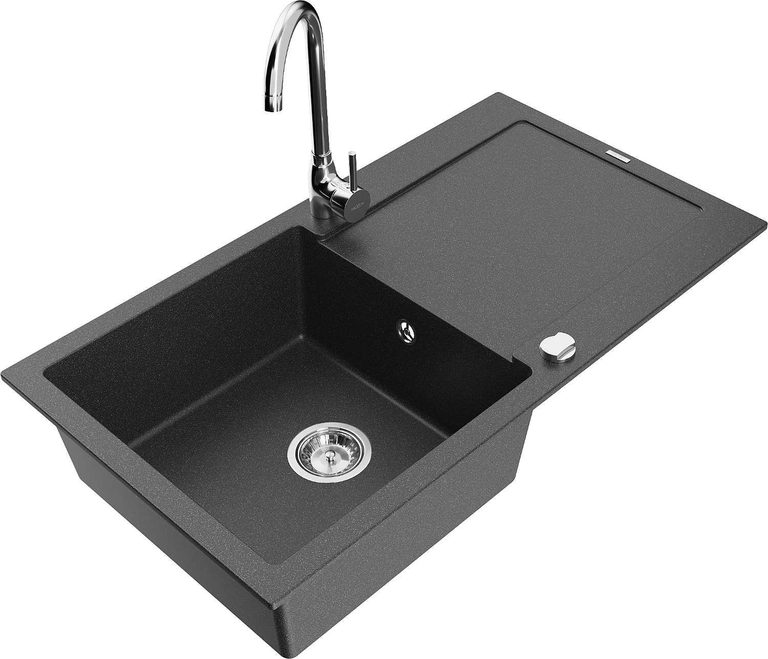 Povrch kuchynského drezu je odolný voči škvrnám a zafarbeniu, vďaka čomu sa ľahko udržiava a zachováva svoju farbu počas dlhého obdobia používania. Estetický a praktický doplnok pre každú kuchyňu.