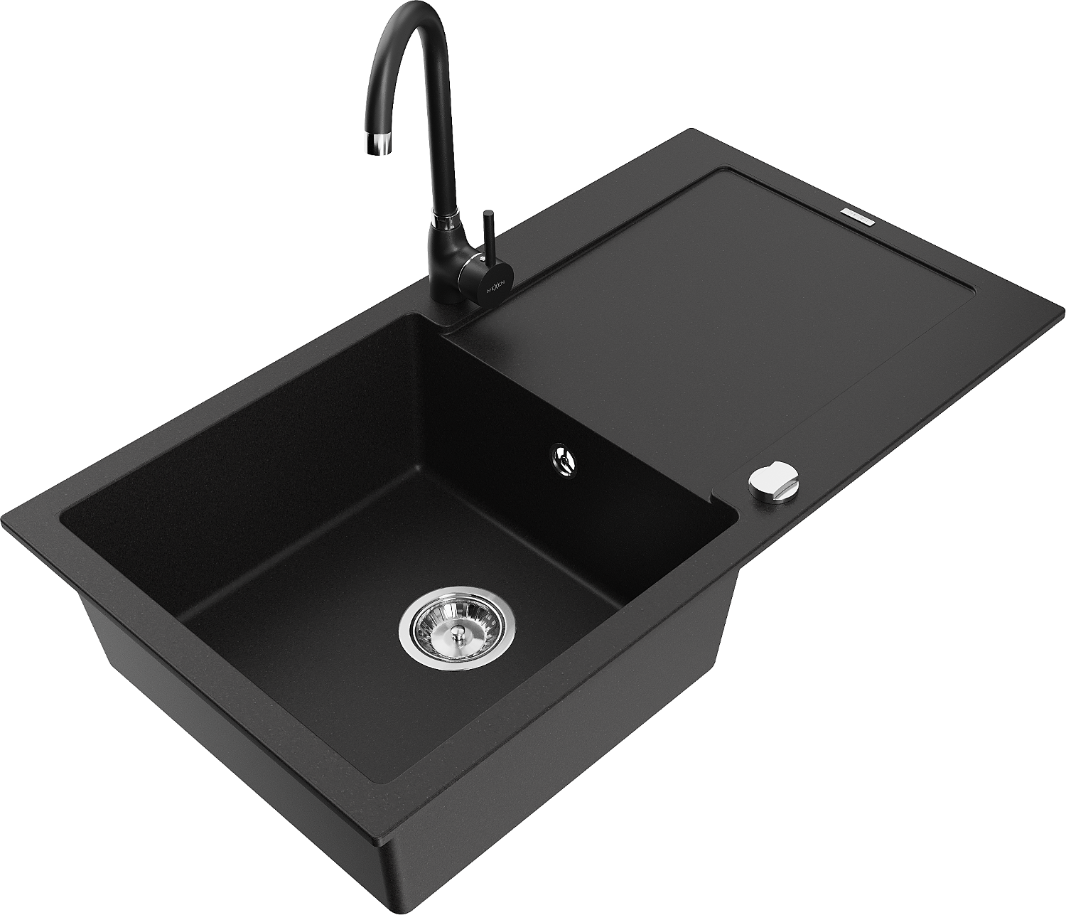 Mexen Leo žulový kuchynský drez 1-komorový s odkvapkávacou plochou a kuchynskou batériou Telma, čierny - 6501-77-670200-70