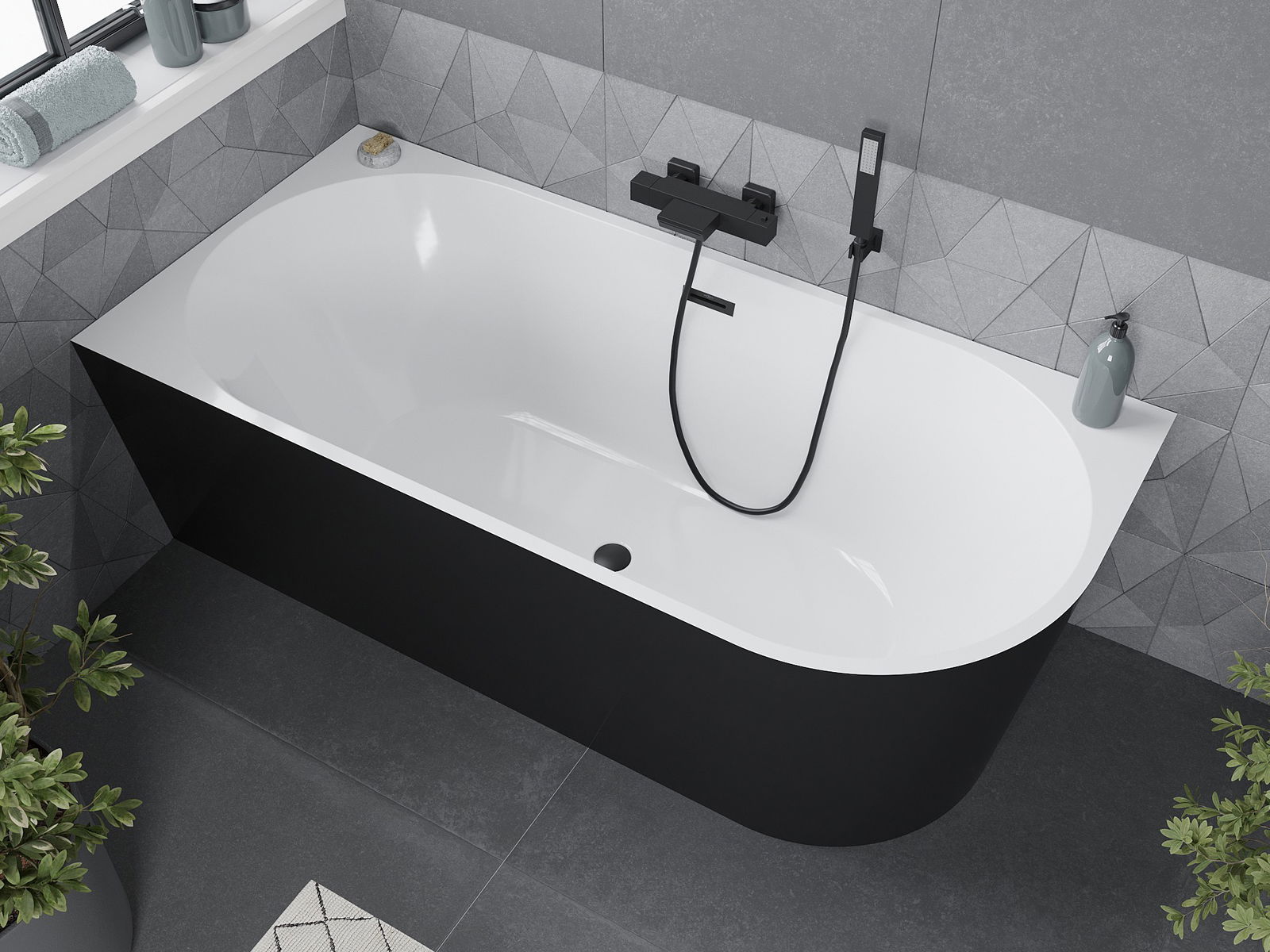Mexen Mia Voľne stojaca rohová vaňa ľavá 160 x 80 cm, biela/čierna, preliv čierny - 52691608075L-70