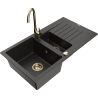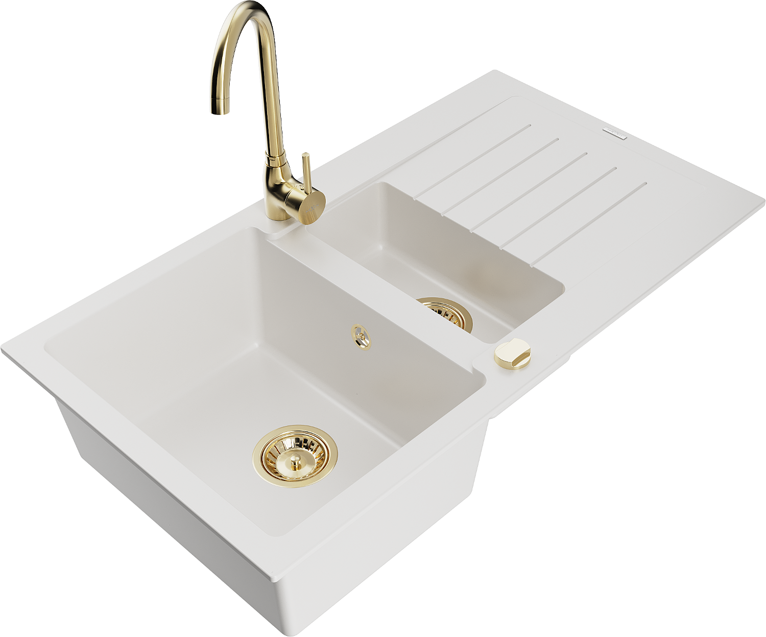Mexen Matias žulový kuchynský drez 1,5-komorový s odkvapom a kuchynskou batériou Telma, biely - 6502-20-670200-50