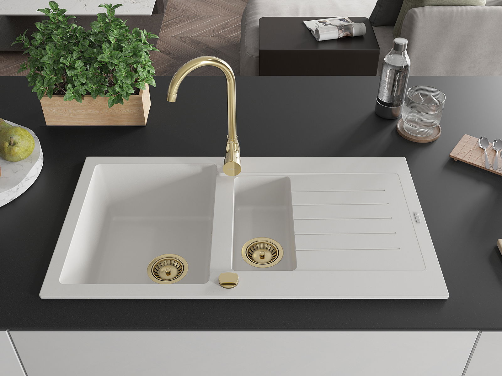 Povrch umývadla je odolný voči škvrnám a sfarbeniu, vďaka čomu sa ľahko čistí a zachováva si svoju farbu po dlhú dobu. Estetický a prakticky dopĺňajúci každú kuchyňu.