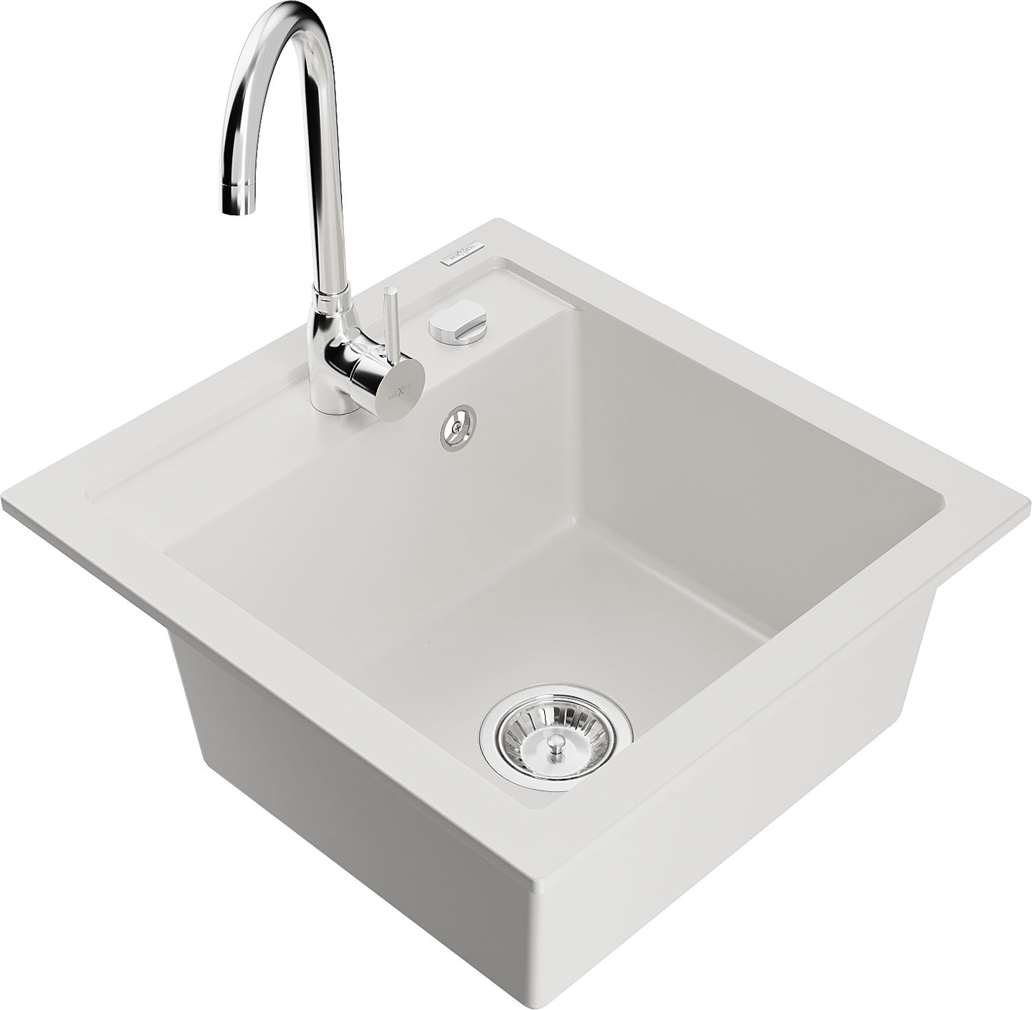 Mexen Vito granitový kuchynský drez 1-komorový s kuchynskou batériou Telma, biely - 6503-20-670200-00