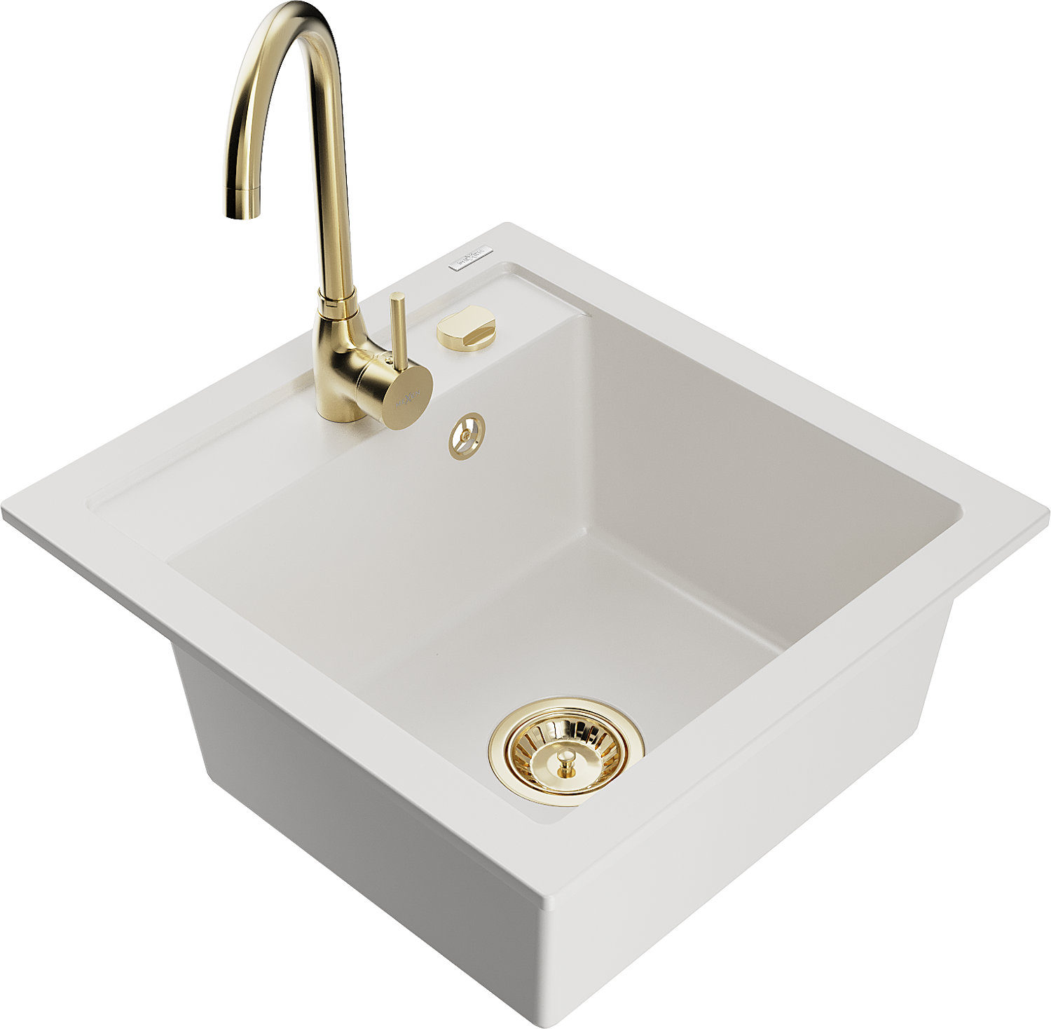 Mexen Vito granitový drez 1-komorový s kuchynskou batériou Telma, biely - 6503-20-670200-50