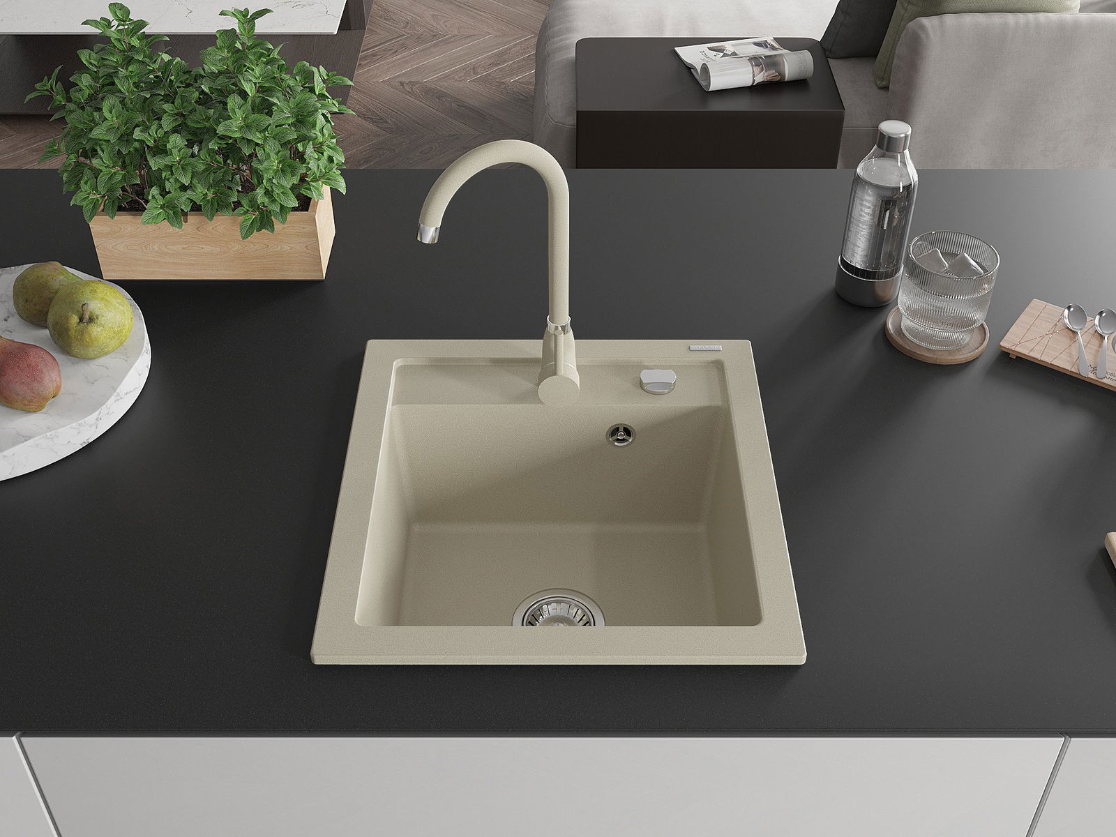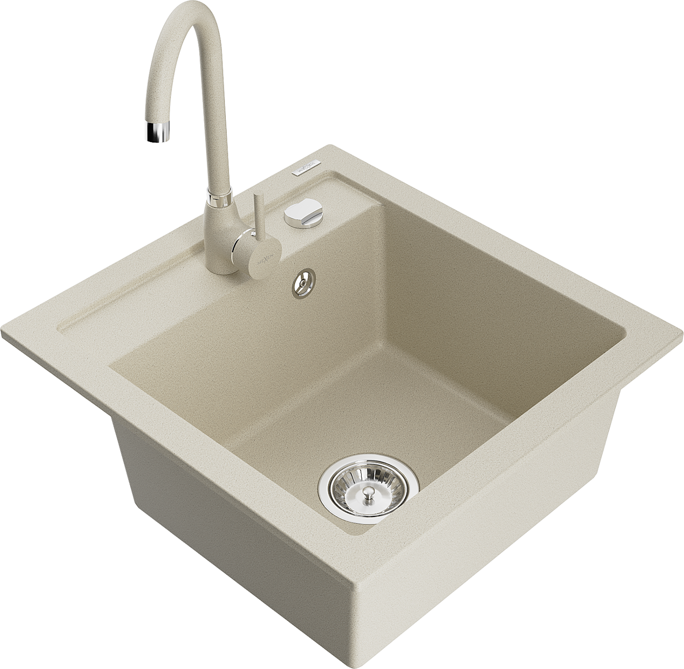 Mexen Vito granitový drez 1-komorový s kuchynskou batériou Telma, béžový - 6503-69-670200-69
