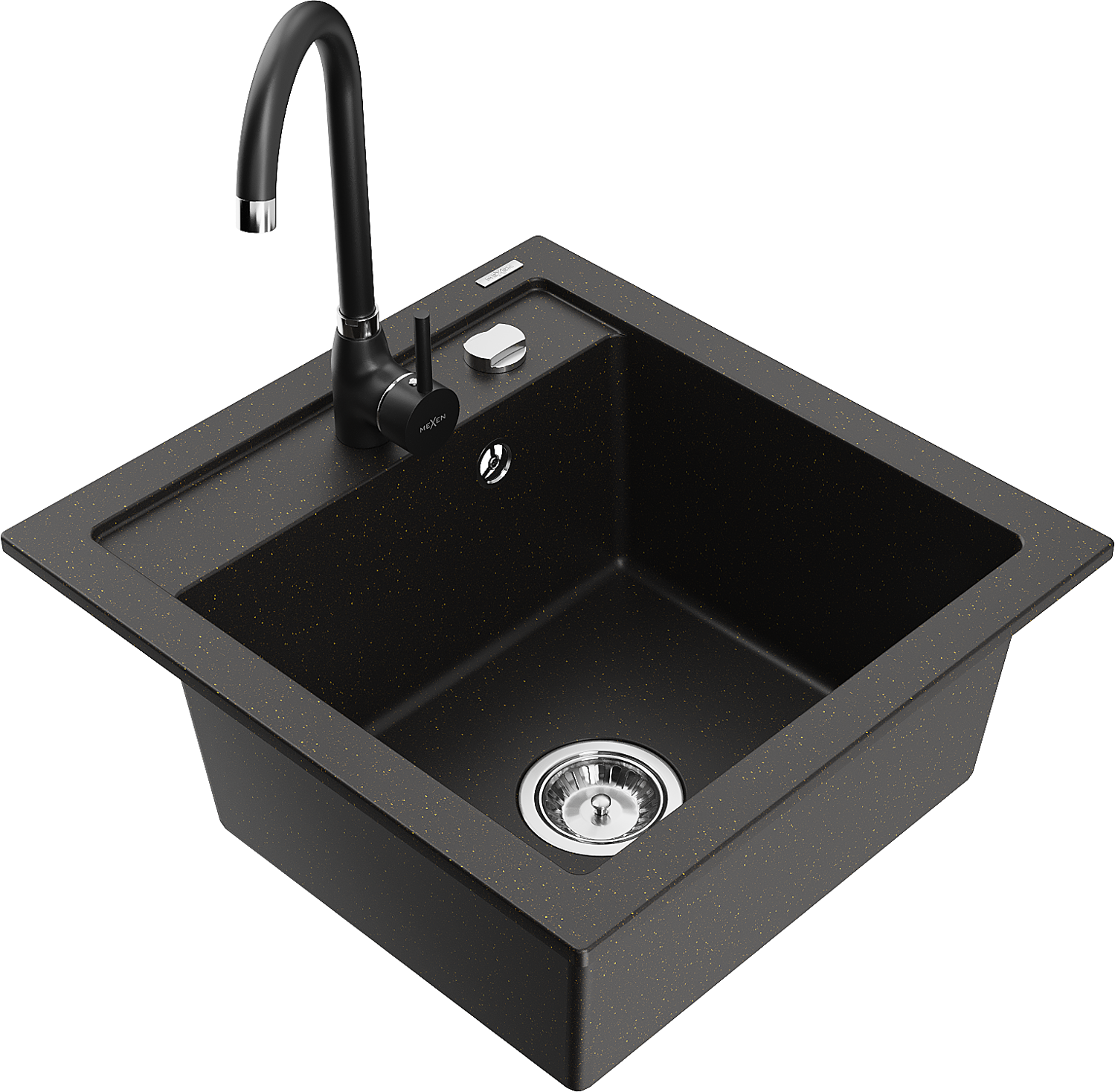 Mexen Vito granitový drez jednodrez s kuchynskou batériou Telma, čierny/zlatý metalik - 6503-75-670200-70