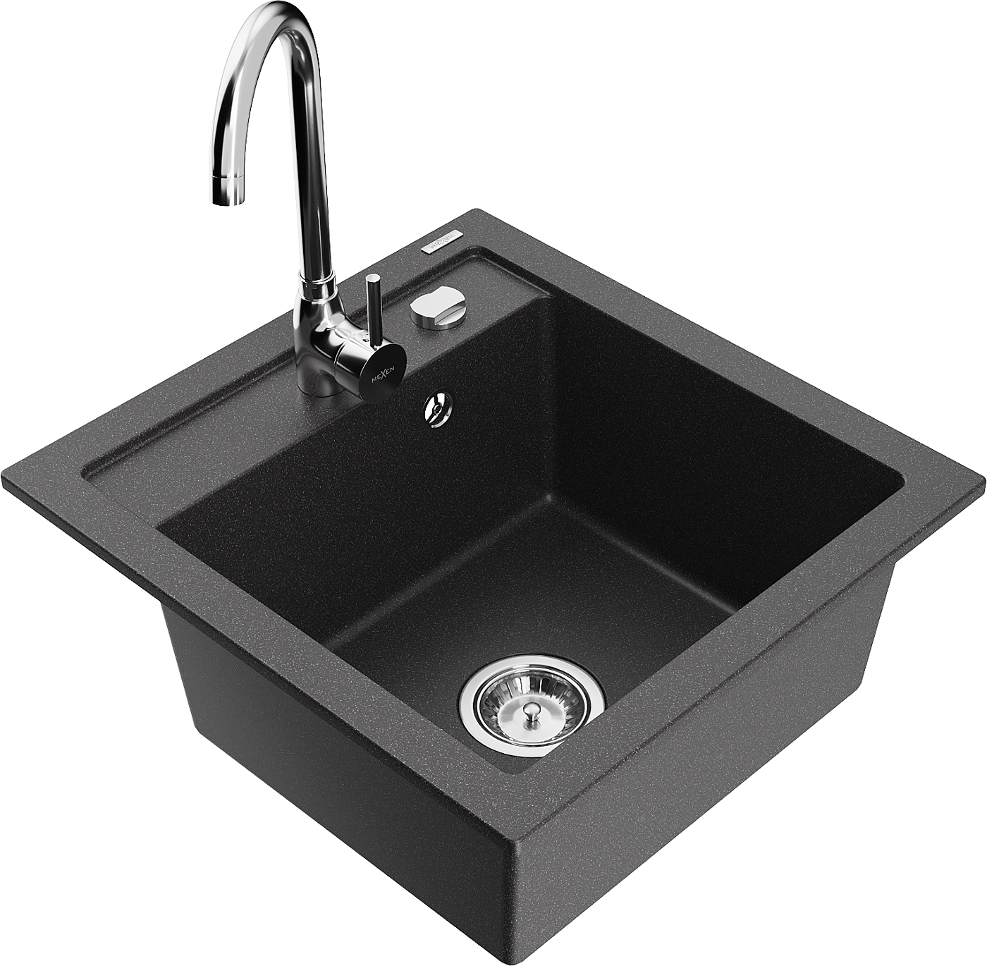 Mexen Vito žulový drez 1-komorový s kuchynskou batériou Telma, čierny škvrnitý - 6503-76-670200-00