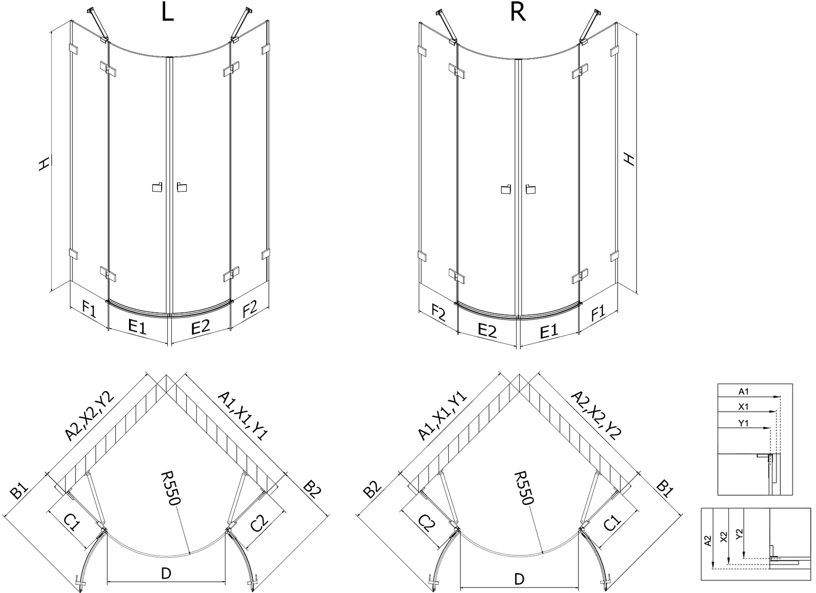 Otáčacie dvere umožňujú maximálnu voľnosť počas používania. Majú pevné pánty vyrobené z trvanlivého materiálu, ktoré sa ľahko udržiavajú čisté a umožňujú jednoduchý prístup do vnútra kabíny.