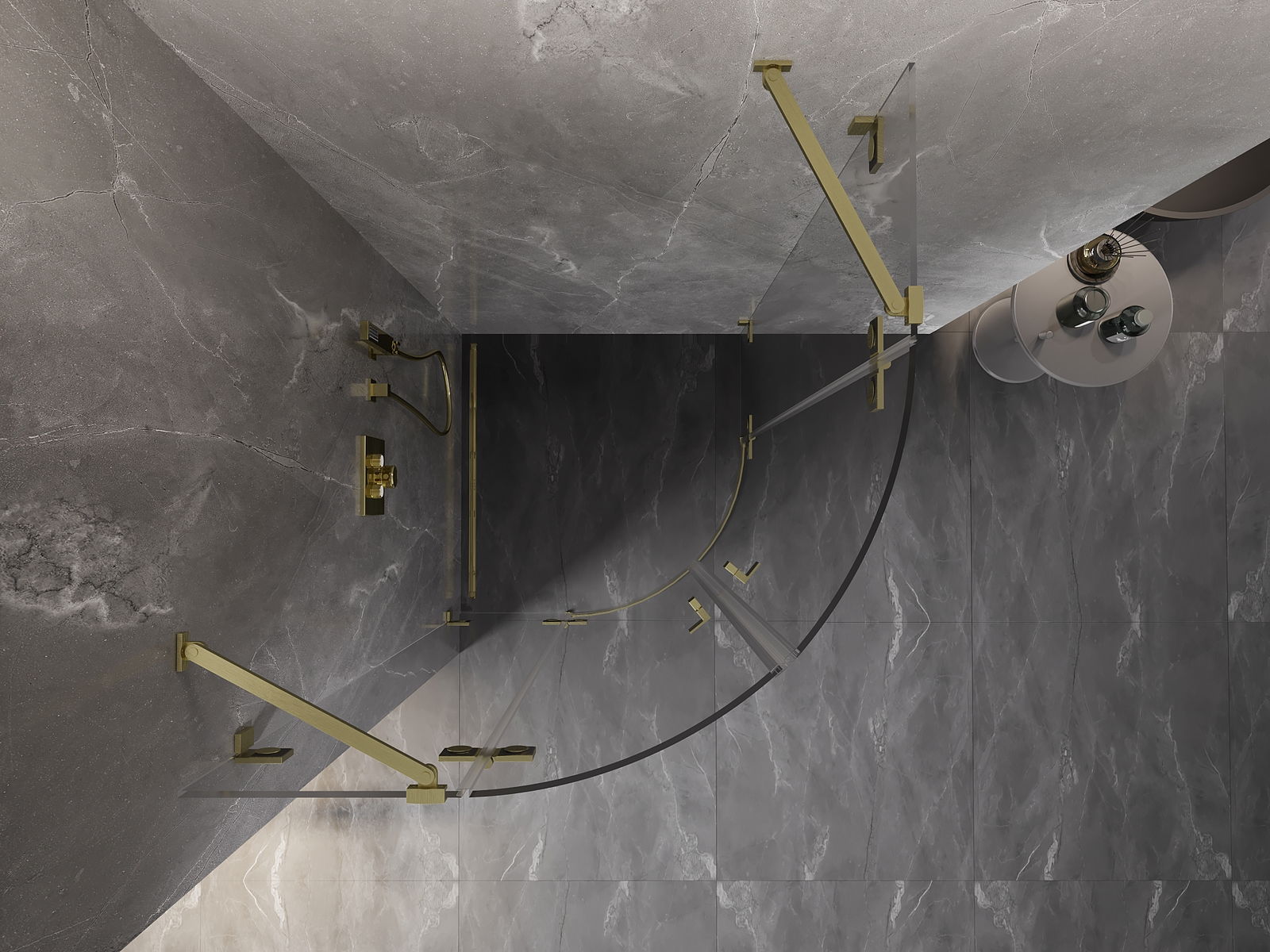 Mexen Lunar kabína sprchová polkruhová otváracia 100 x 100 cm, transparentná, zlatá kartáčovaná - 833-100L-100P-55-00