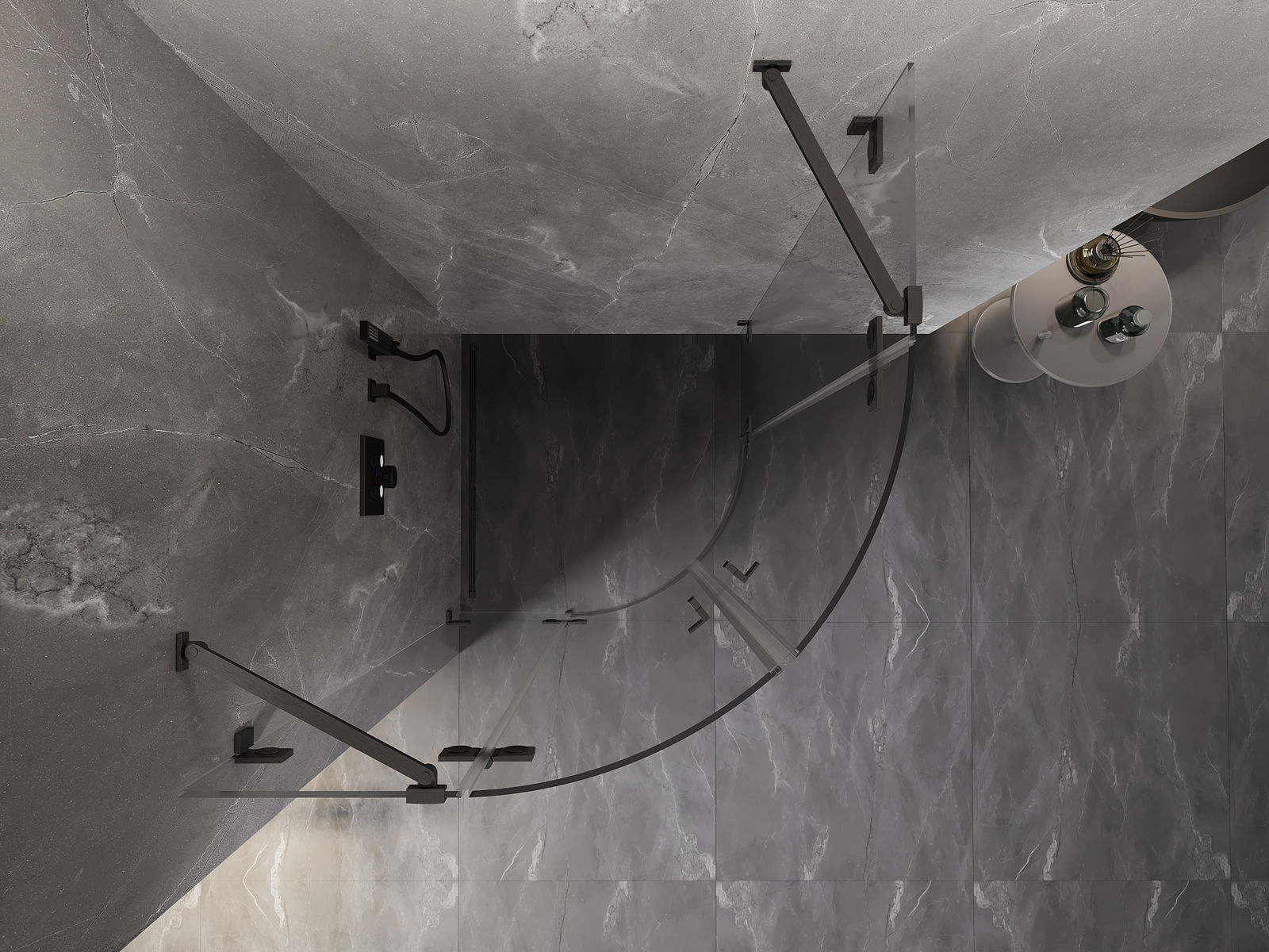 Mexen Lunar polkruhová sprchová kabína s otváracími dverami 80 x 80 cm, priehľadná, brúsená zbraňová sivá - 833-080L-080P-66-00