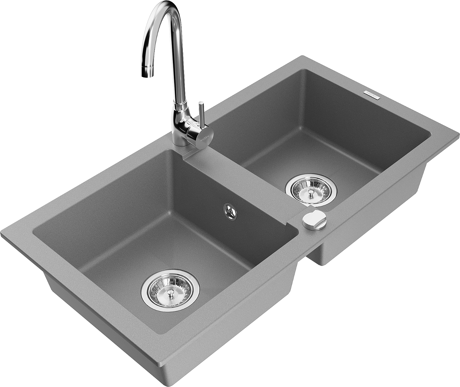 Mexen Mario kuchynský granitový drez 2-komorový s kuchynskou batériou Telma, sivý - 6504-71-670200-00