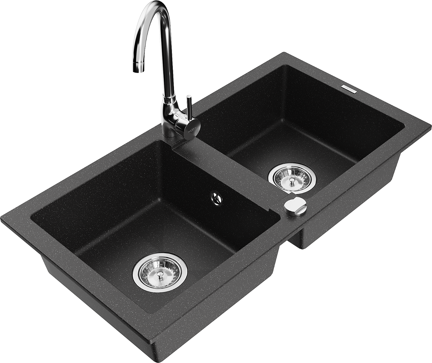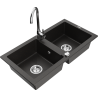 Mexen Mario granitový dvojkomorový drez s kuchynskou batériou Telma, čierny/strieborný - 6504-73-670200-00