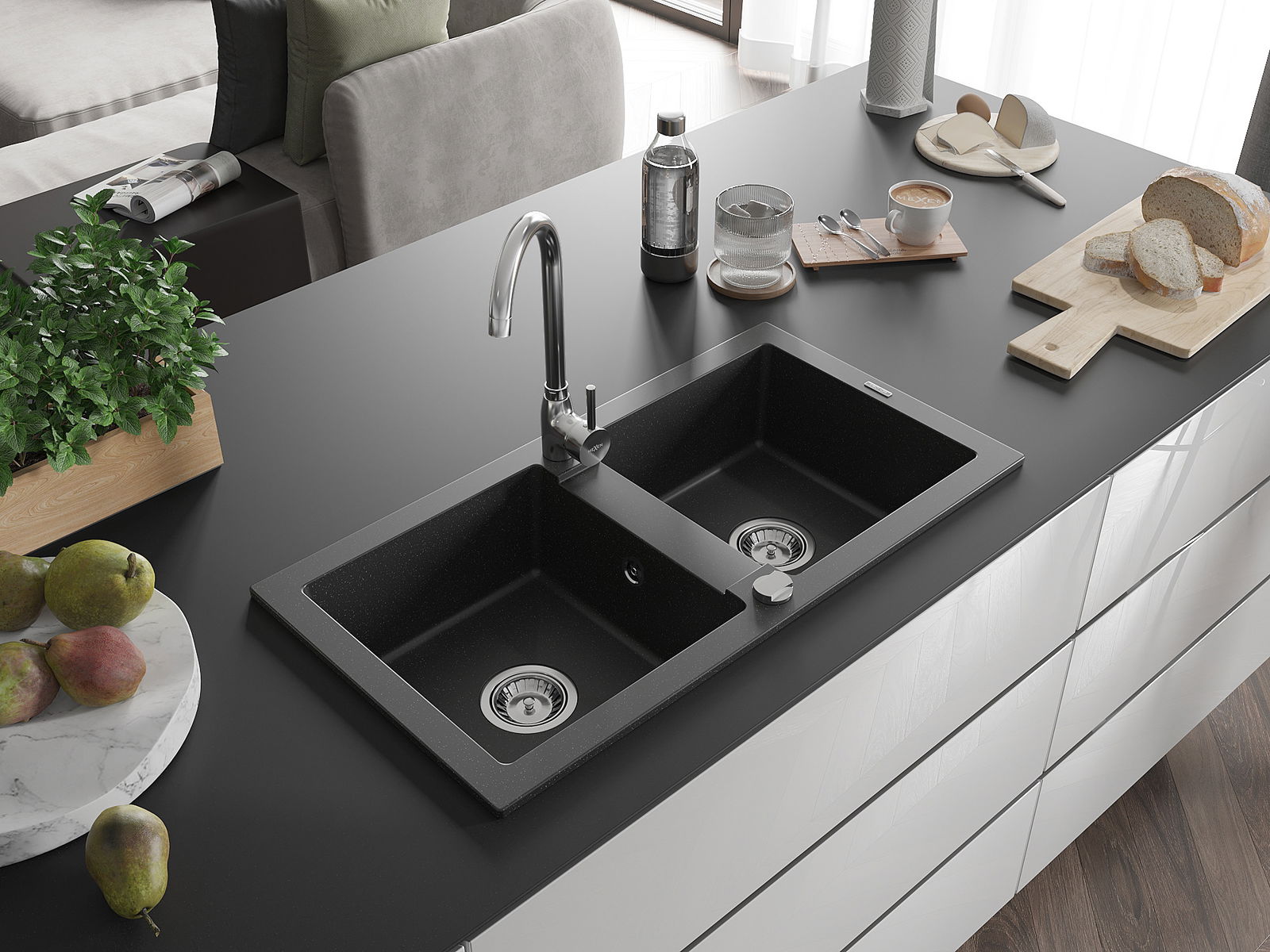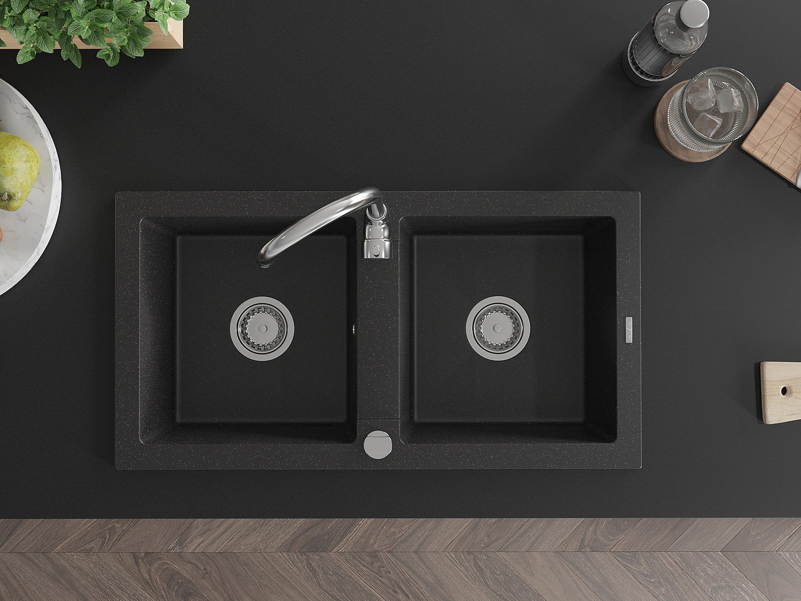 Povrch umývadla je odolný voči škvrnám a sfarbeniu, vďaka čomu sa ľahko čistí a zachováva si svoju farbu po dlhú dobu. Estetický a prakticky dopĺňajúci každú kuchyňu.