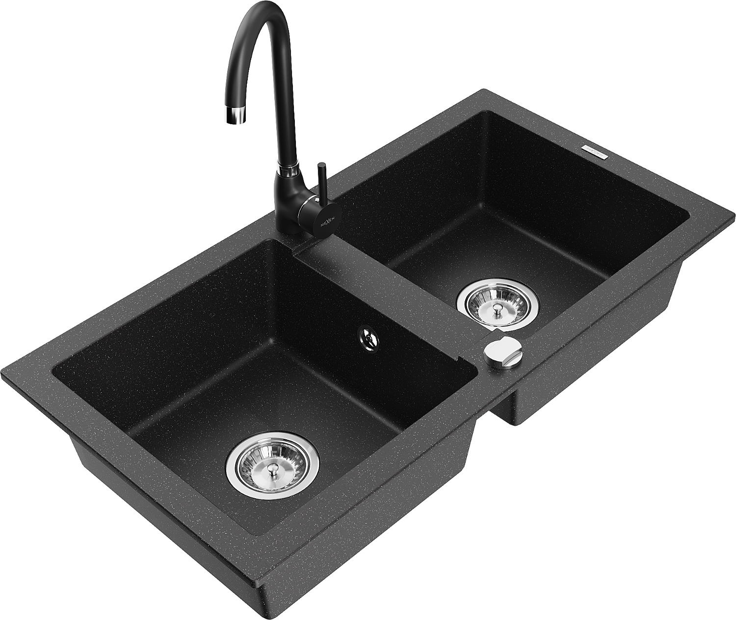 Mexen Mario žulový drez 2-komorový s kuchynskou batériou Telma, čierna/strieborná - 6504-73-670200-70