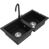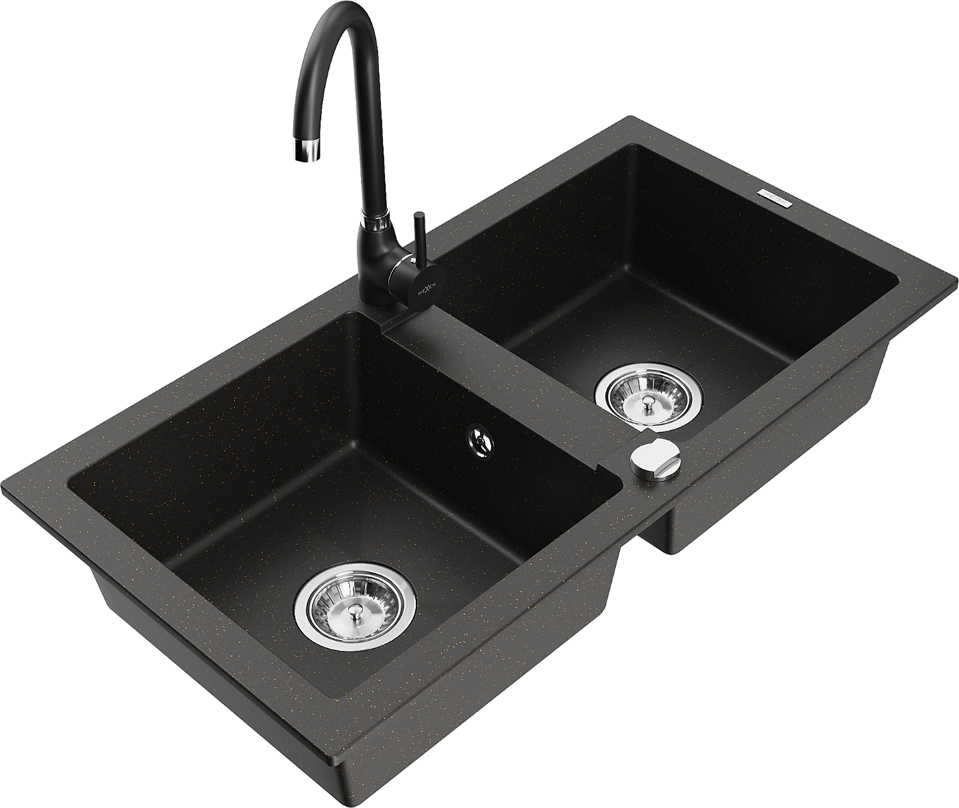 Mexen Mario žulový dvojkomorový drez s kuchynskou batériou Telma, čierny/zlatý - 6504-75-670200-70