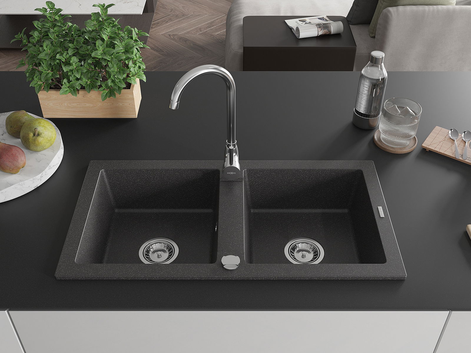 Povrch umývadla je odolný voči škvrnám a sfarbeniu, vďaka čomu sa ľahko čistí a zachováva si svoju farbu po dlhú dobu. Estetický a prakticky dopĺňajúci každú kuchyňu.