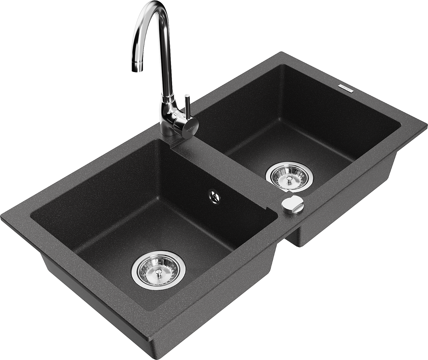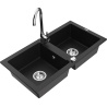 Mexen Mario dvojkomorový žulový drez s kuchynskou batériou Telma, čierny bodkovaný - 6504-76-670200-00