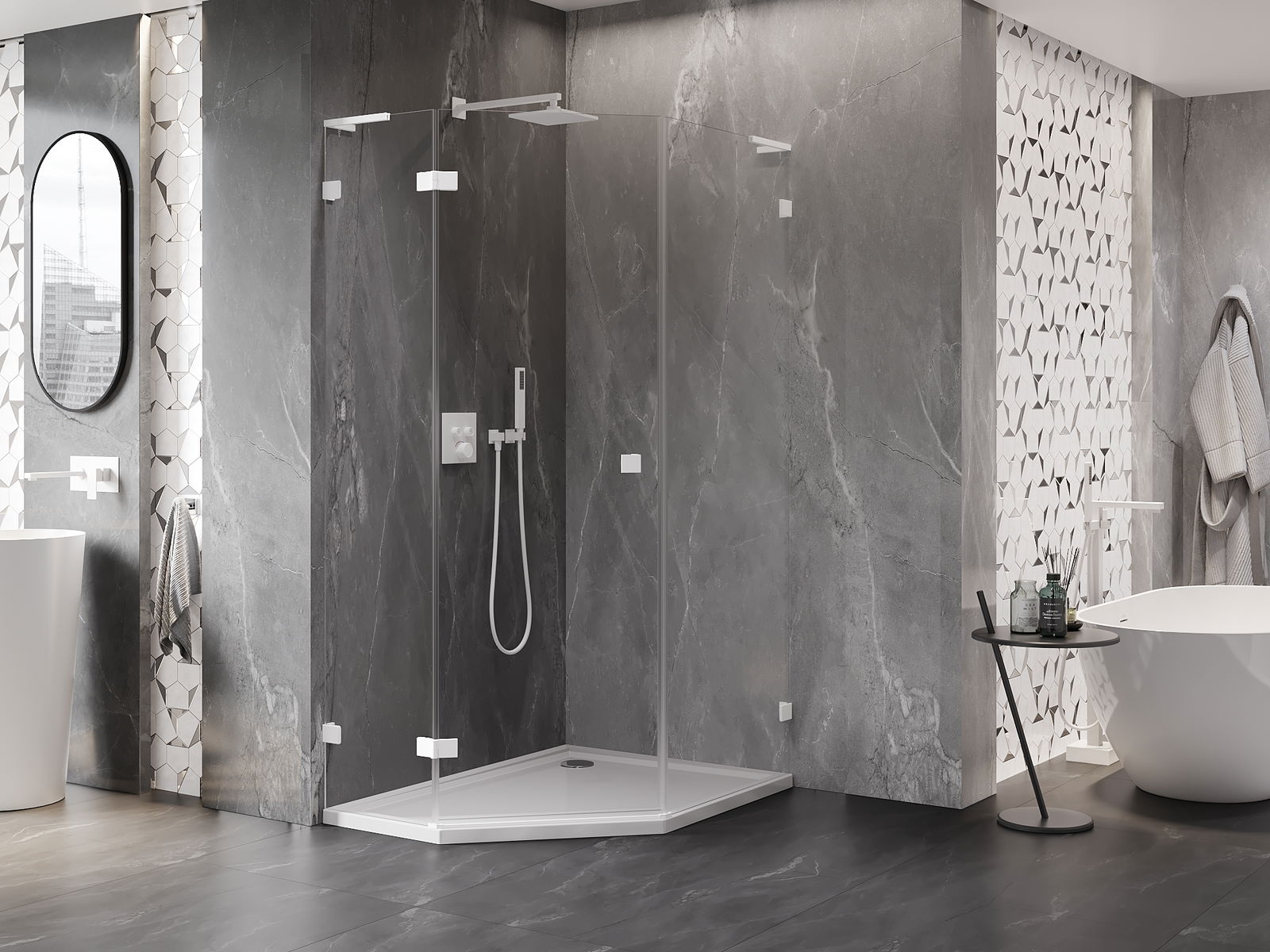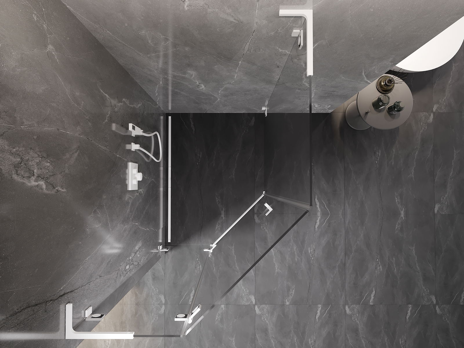 Mexen Lunar L pentagonálna sprchová kabína otváracia ľavá 80 x 90 cm, transparentná, biela - 831L-080L-090P-20-00-L