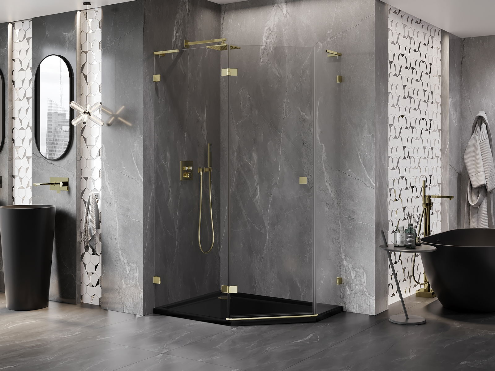 Svorky a závesy boli vyrobené z veľmi odolnej mosadze a navyše vytvárajú zarovnanú tabuľu skla. Je to vynikajúci výber, ktorý spája eleganciu, trvanlivosť a moderný dizajn. Vďaka takýmto riešeniam sprcha získa na estetike a zároveň uľahčujú udržiavanie čistoty.