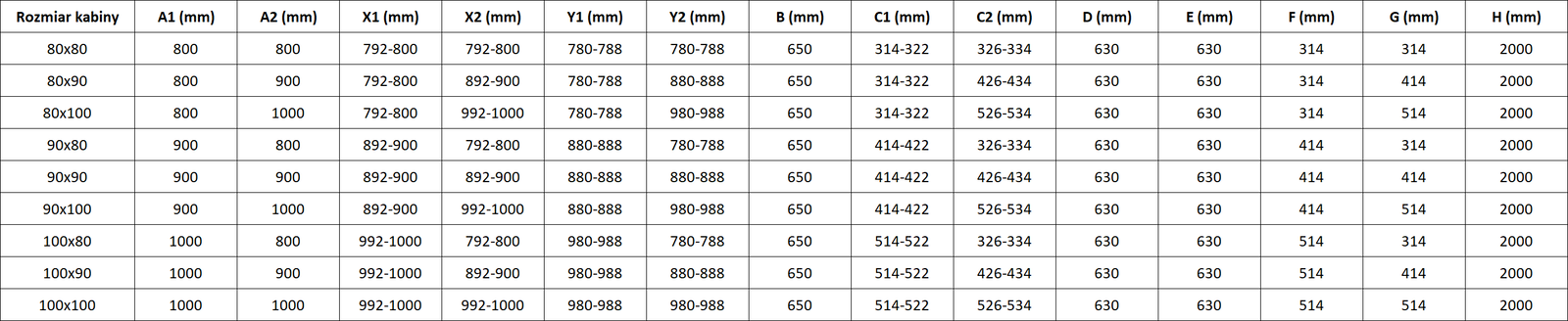 Rozmer: 100x100 cm (dvere ľavé 100 cm, stena 100 cm)