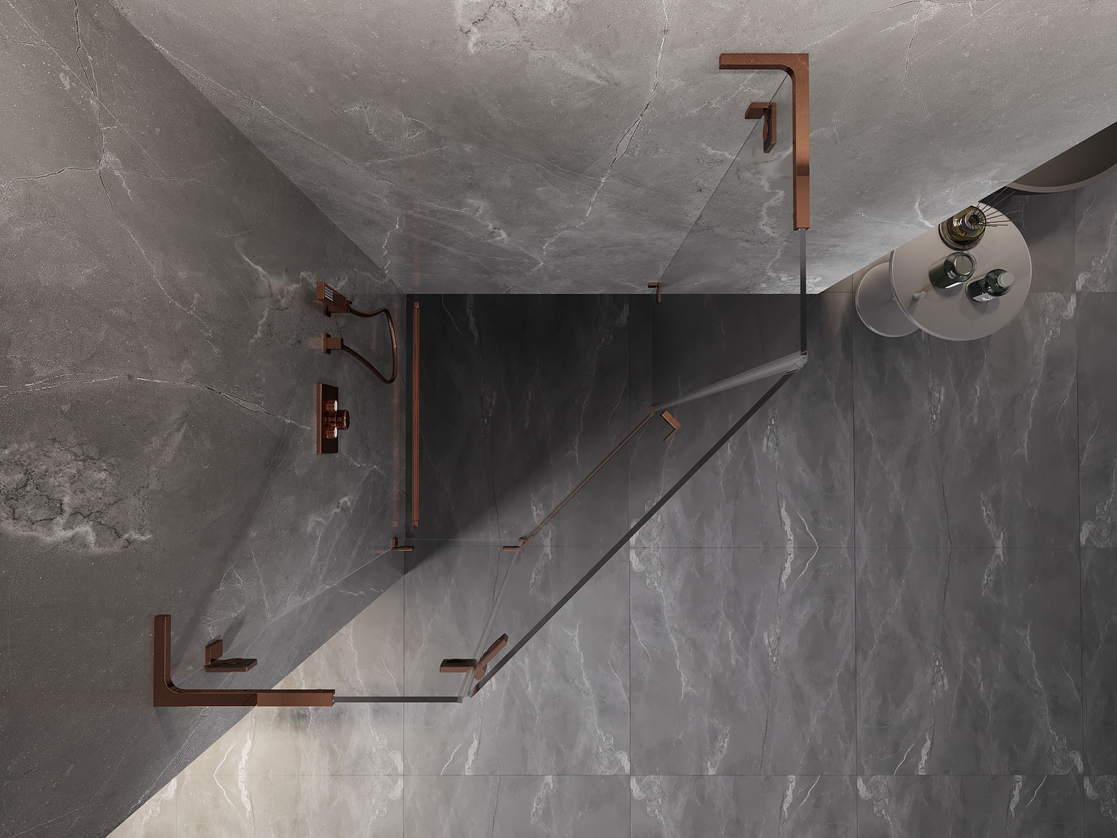 Mexen Lunar L päťuholníková sprchová kabína otváracia ľavá 80 x 80 cm, transparentná, ružové zlato - 831L-080L-080P-60-00-L